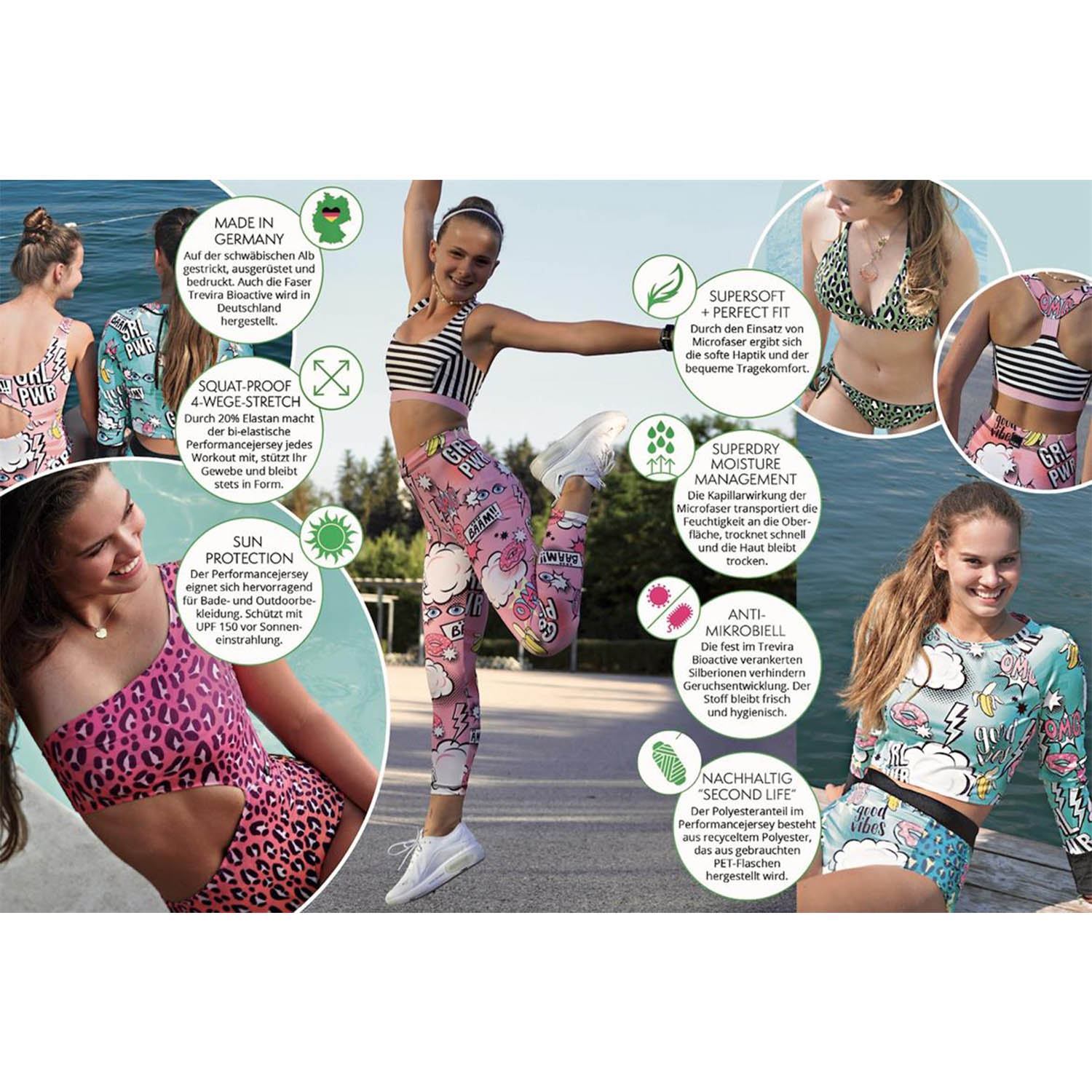 Oavsett om det gäller leggings, sport-bh:ar, toppar, badkläder eller yogakläder: det här tyget får dina skärningar att glänsa och kan kombineras med mönstrad performance-design. Färgen har en modern, högkvalitativ look och är också ett riktigt blickfång i sig självt.