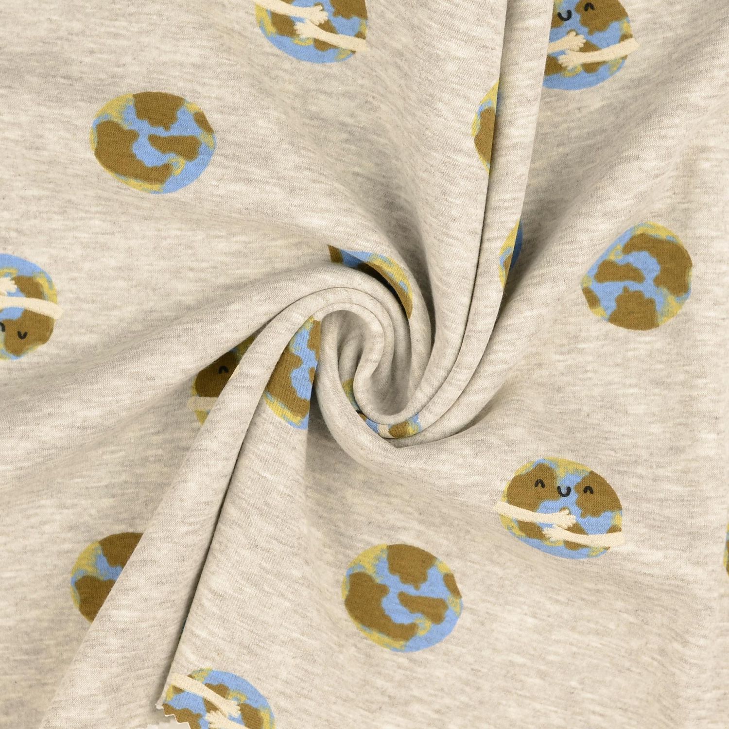 Med denna alpenfleece tar du hela världen till ditt syhörn. På den mjukt melerade grå tonen sprids stiliserade jordglober i mjuk oliv – diskret, modern och helt tidlös. Den fina meleringen ger tyget ett elegant, lätt strukturerat utseende, medan det dämpade färgschemat skapar ett lugnt, naturligt utseende.
