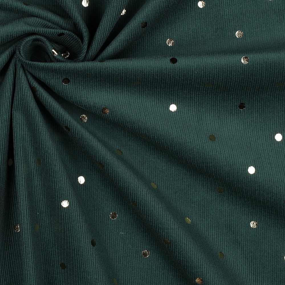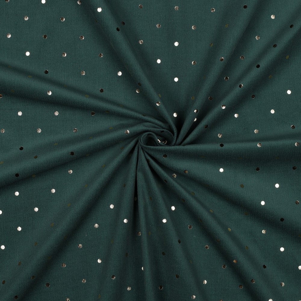 Babycord - Guldfolieprickar på grangrön