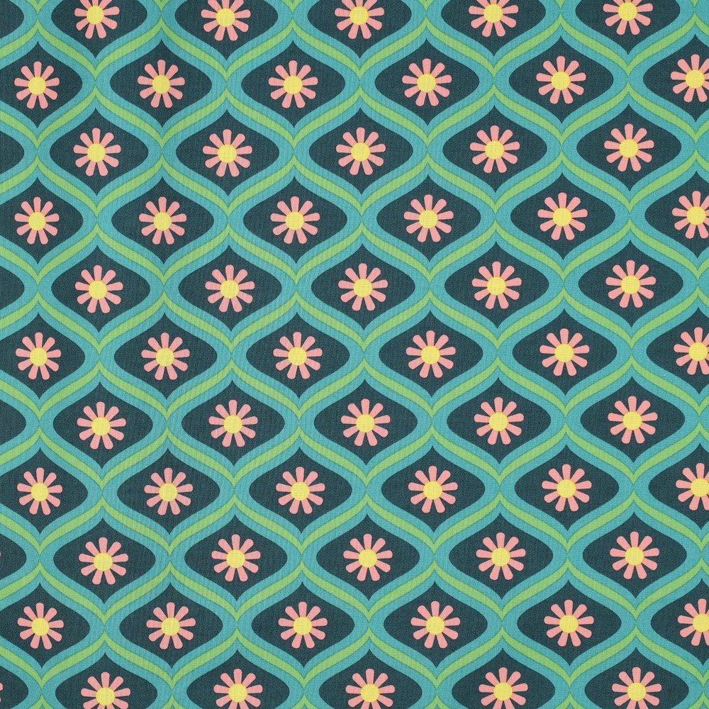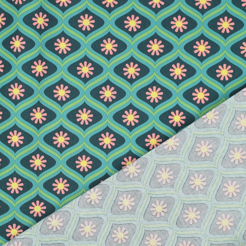 Oavsett om det är till köket, matbordet, trädgården eller barnrummet: Den belagda bomullen ”Gröna blommor” ger med sin mjuka, blommiga design direkt en glad stämning i ditt hem och är en underbar följeslagare för dina kreativa projekt.