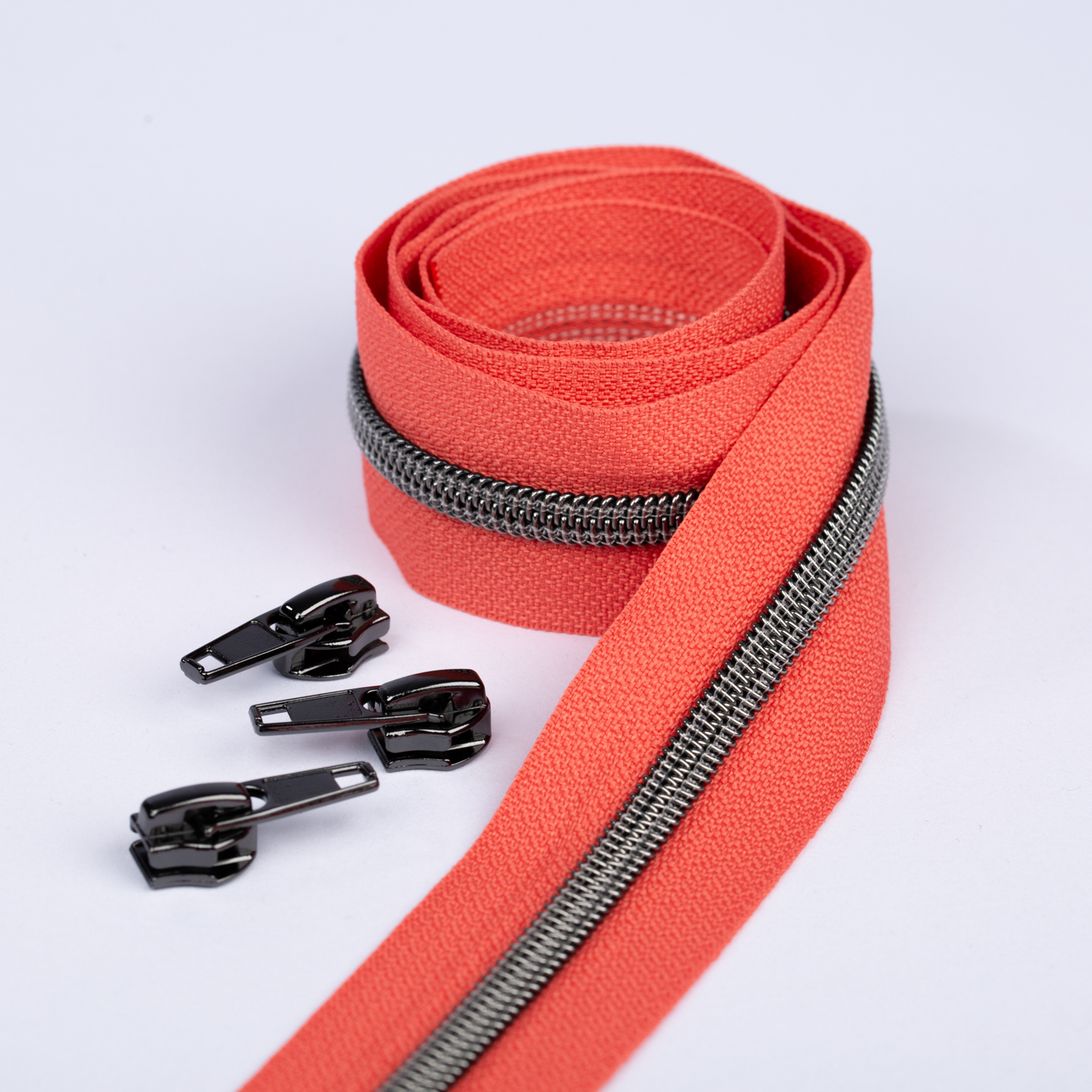 Blixtlås i gunmetal metalliserad 6,5mm pärla | 1m | korall