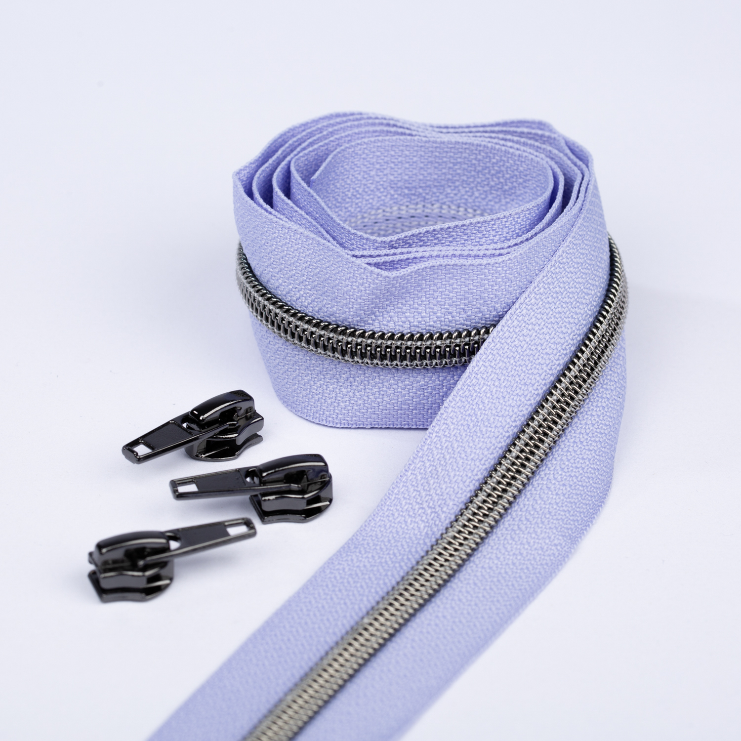 Blixtlås i gunmetal metalliserad 6,5mm pärla | 1m | ljuslila D268