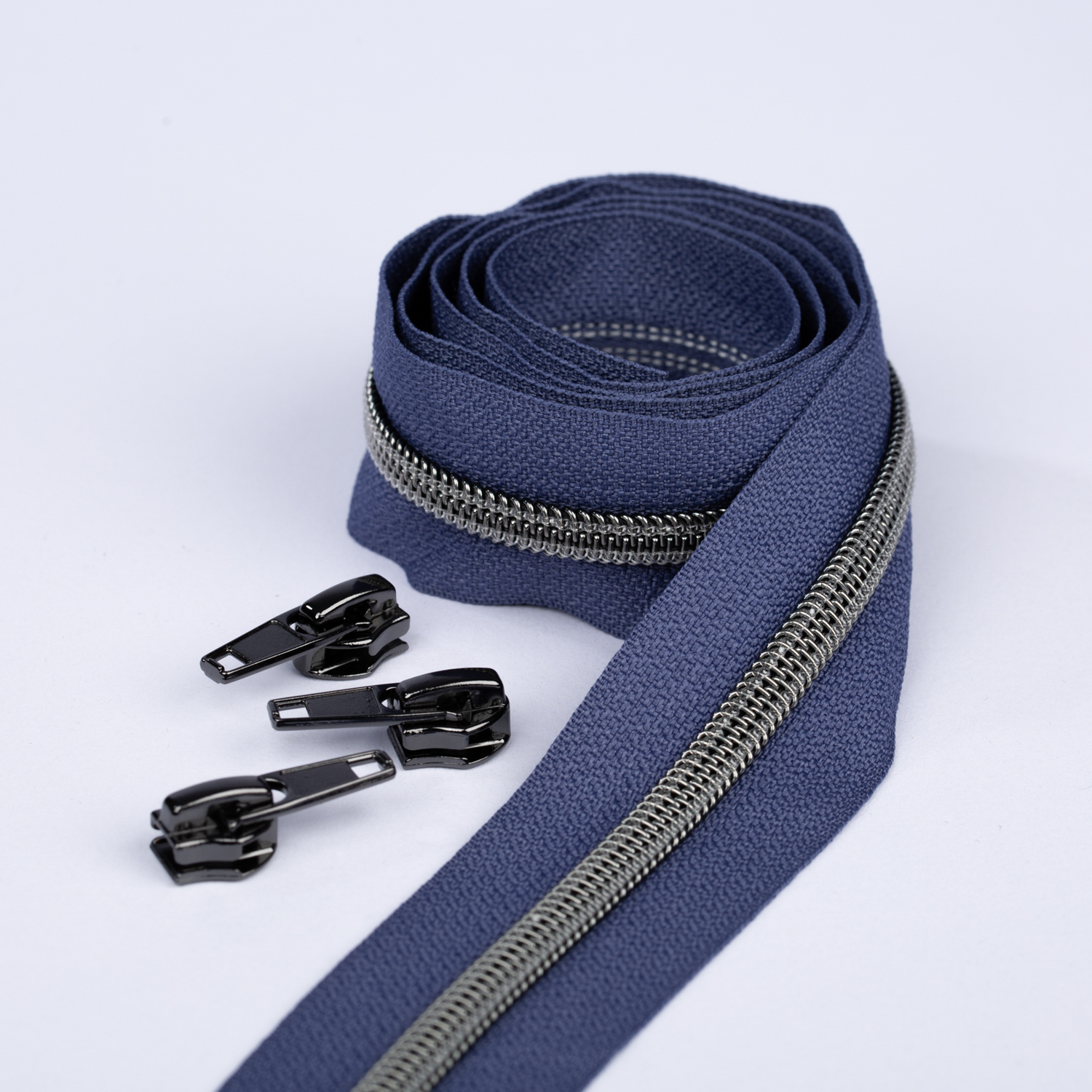 Blixtlås i gunmetal metalliserad 6,5mm pärla | 1m | Mörklila D321