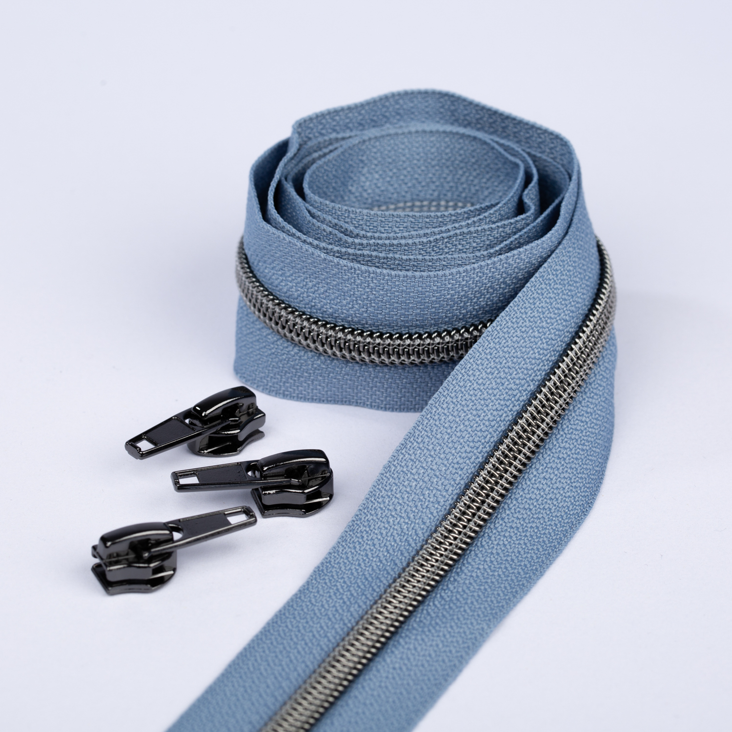 Blixtlås i gunmetal metalliserad 6,5mm pärla | 1m | pastellblå