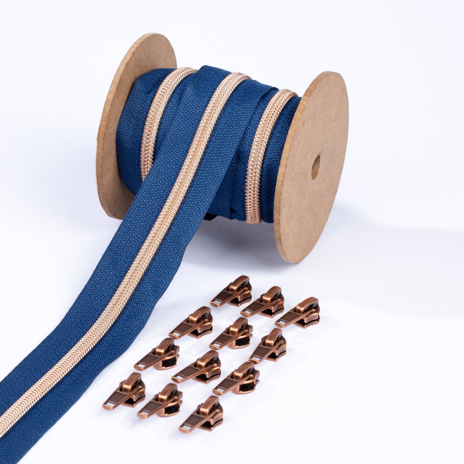 Blixtlås i koppar metalliserad 6,5mm pärla | 3m | Marin D040