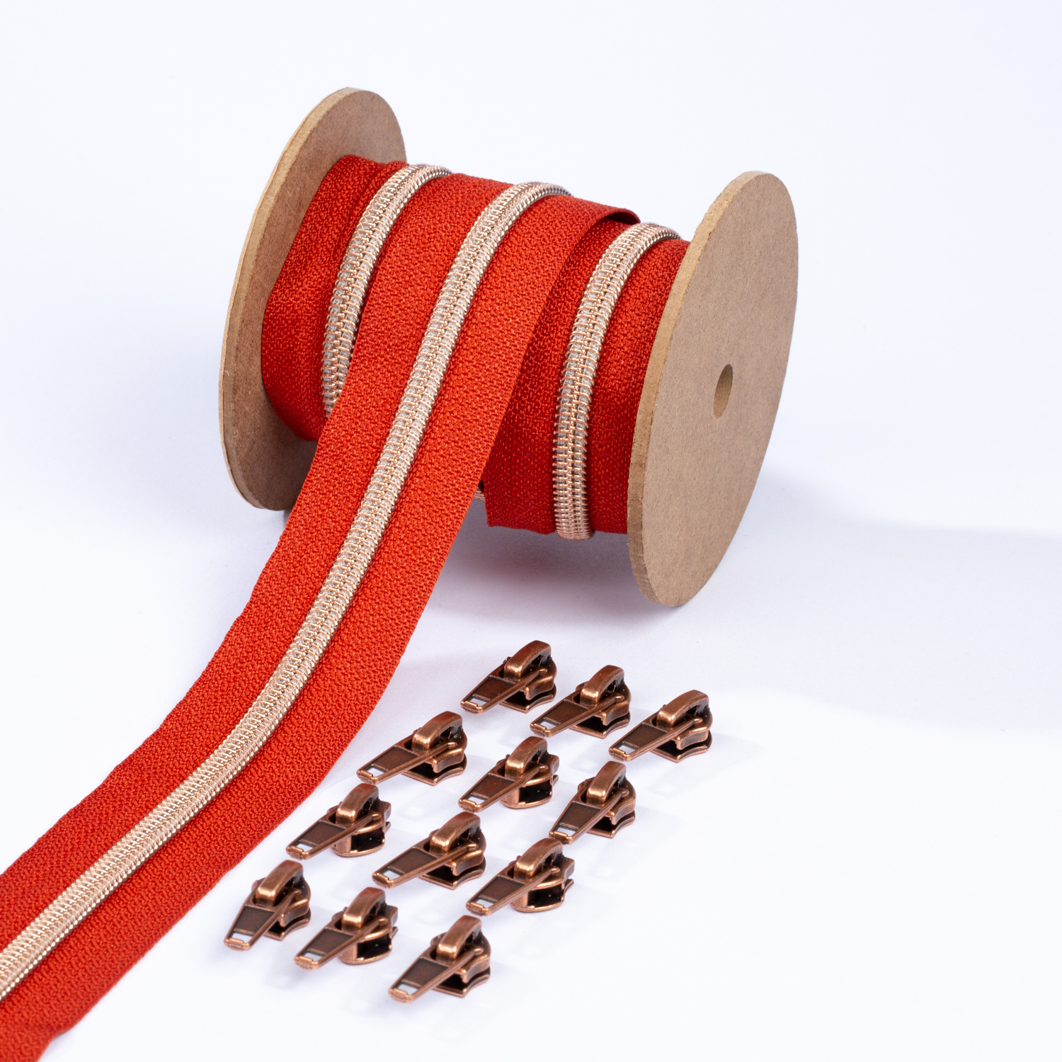 Blixtlås i koppar metalliserad 6,5mm pärla | 3m | rost D045