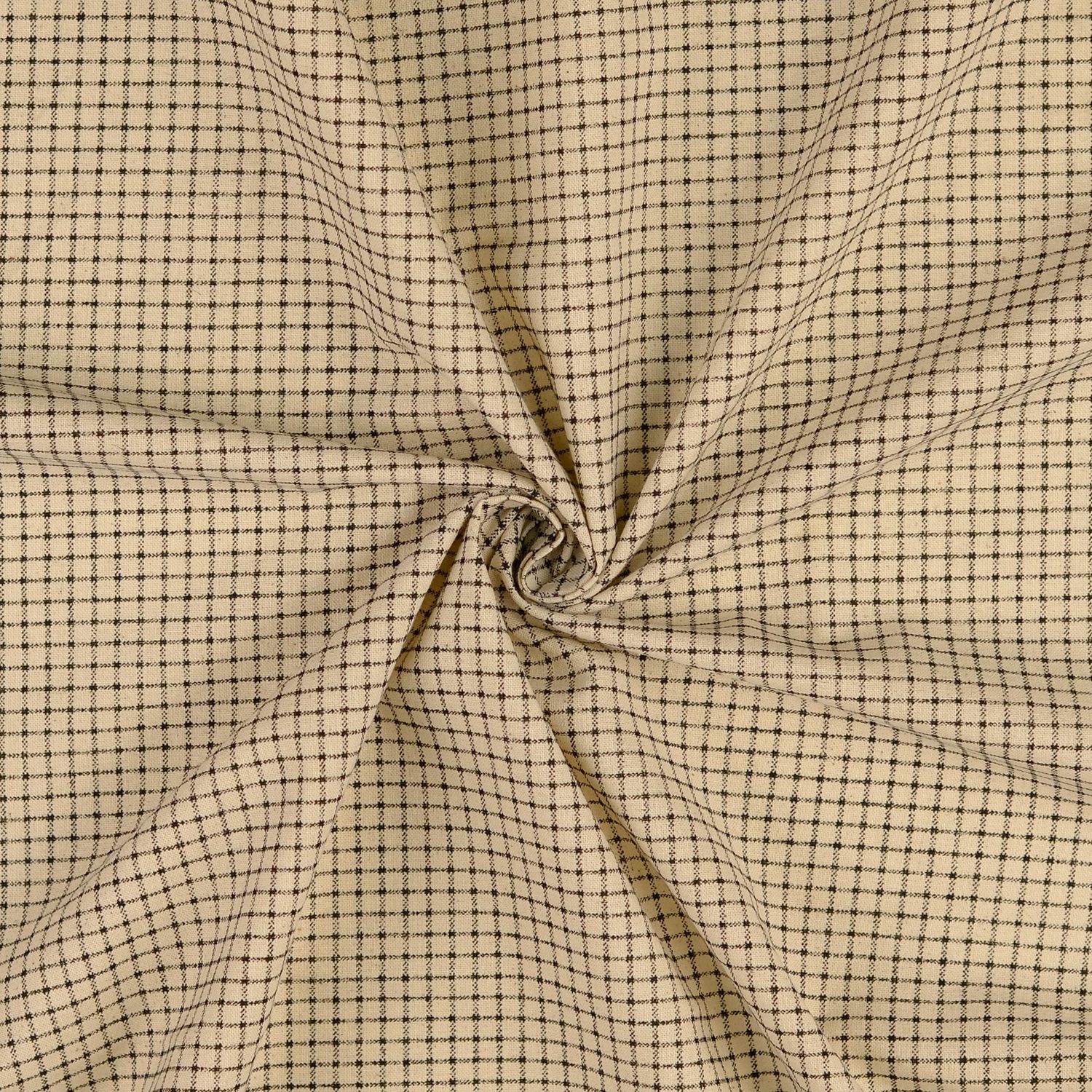 Med sitt lugna, naturliga utseende är “Bomull Cretonne Vintage - Rutig Beige Svart” en mångsidig allrounder som ger dina syprojekt en stilfull, varm och välkomnande känsla.