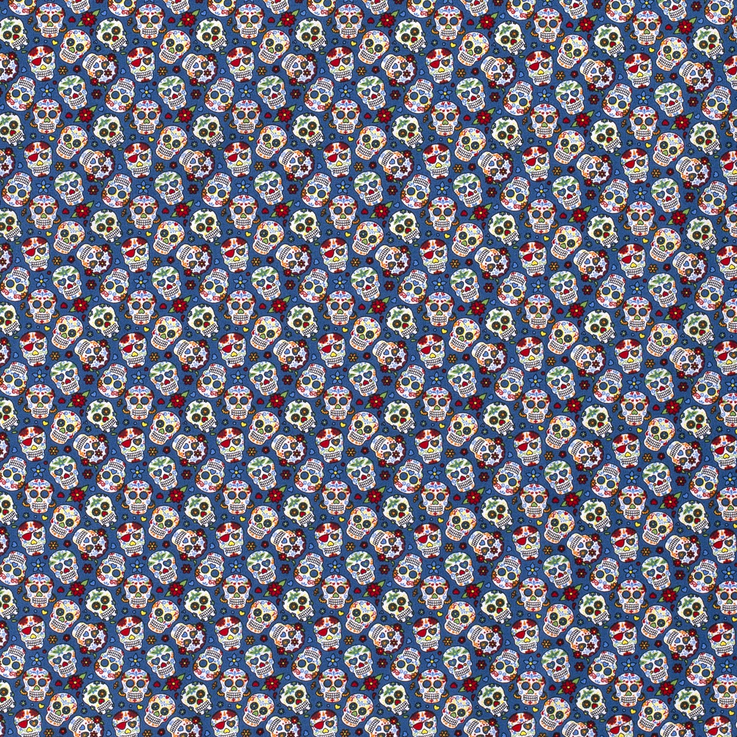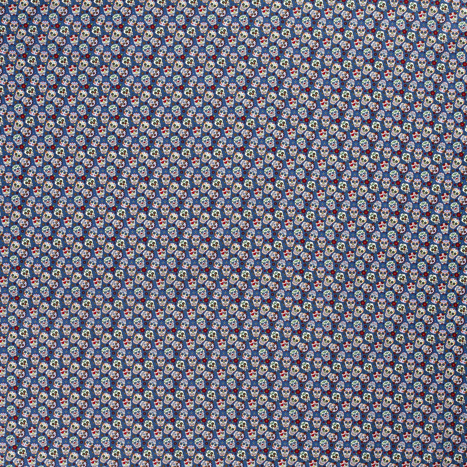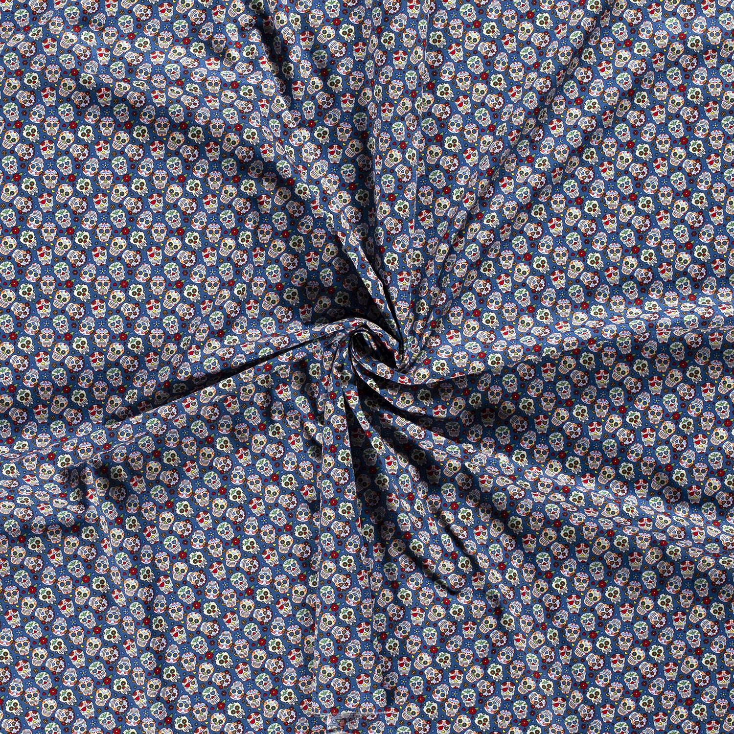 Bomull Små Blommor Skallar på Blått