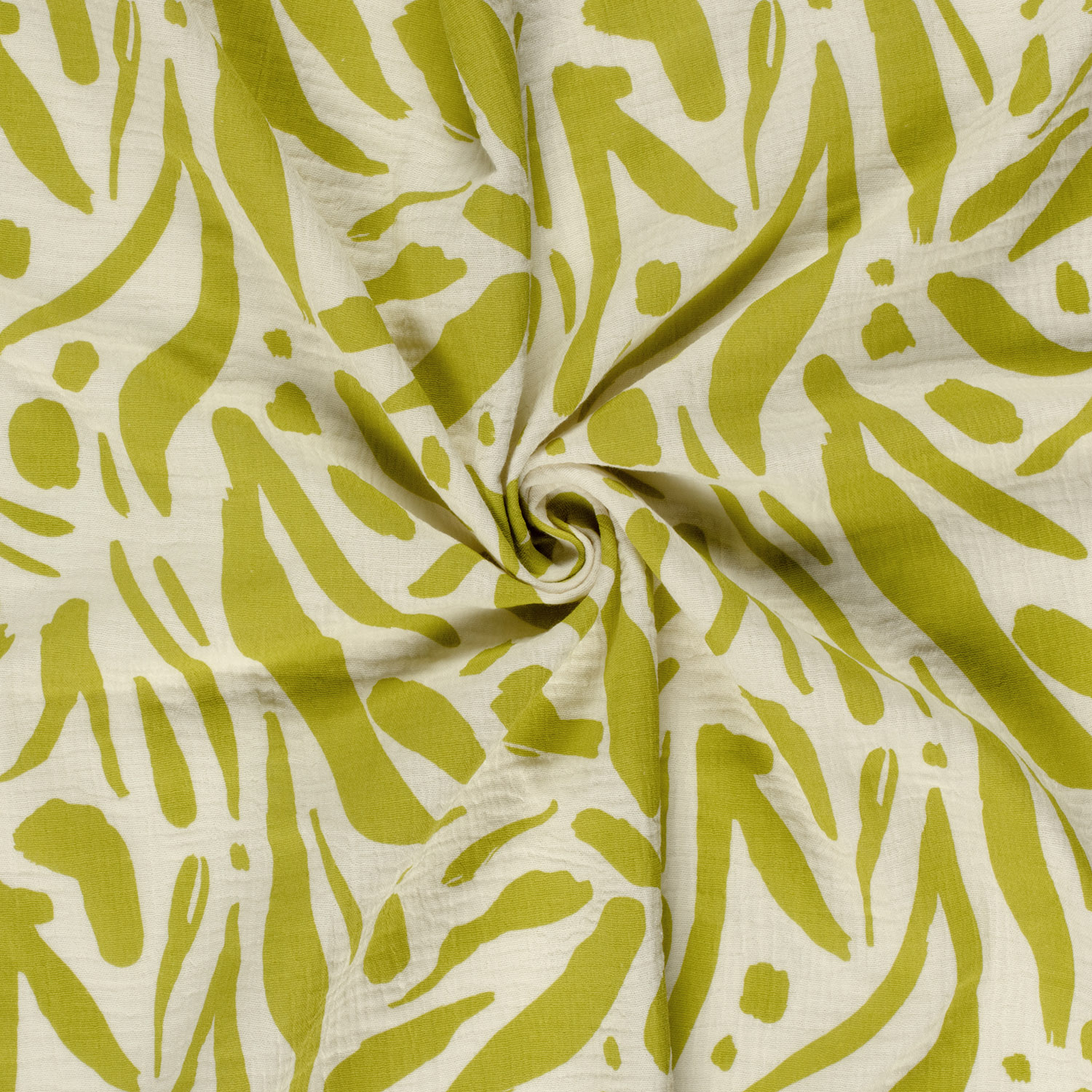 Bomulls-musselin - Double Gauze abstrakta blad Lime