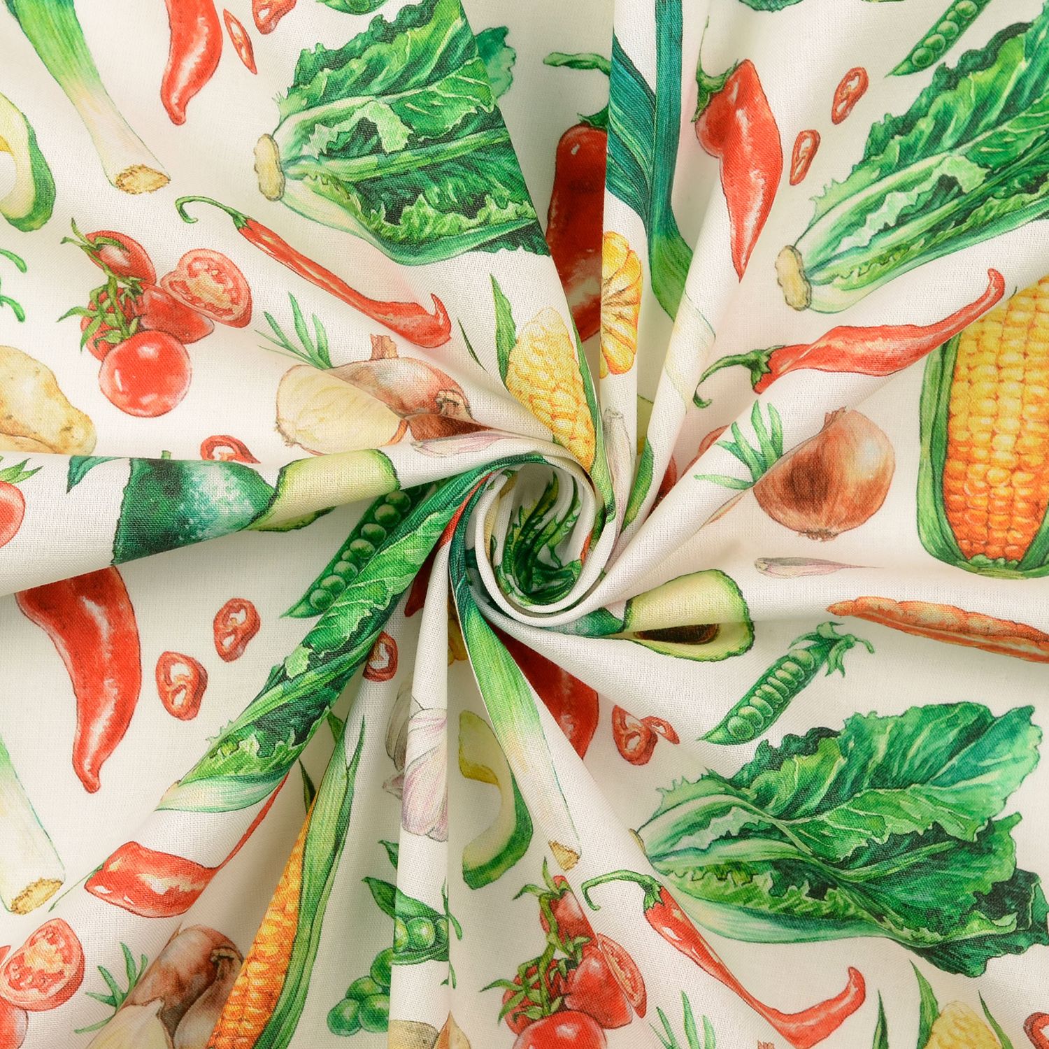 Bomullscretonne - Digitaltryck grönsaker vit