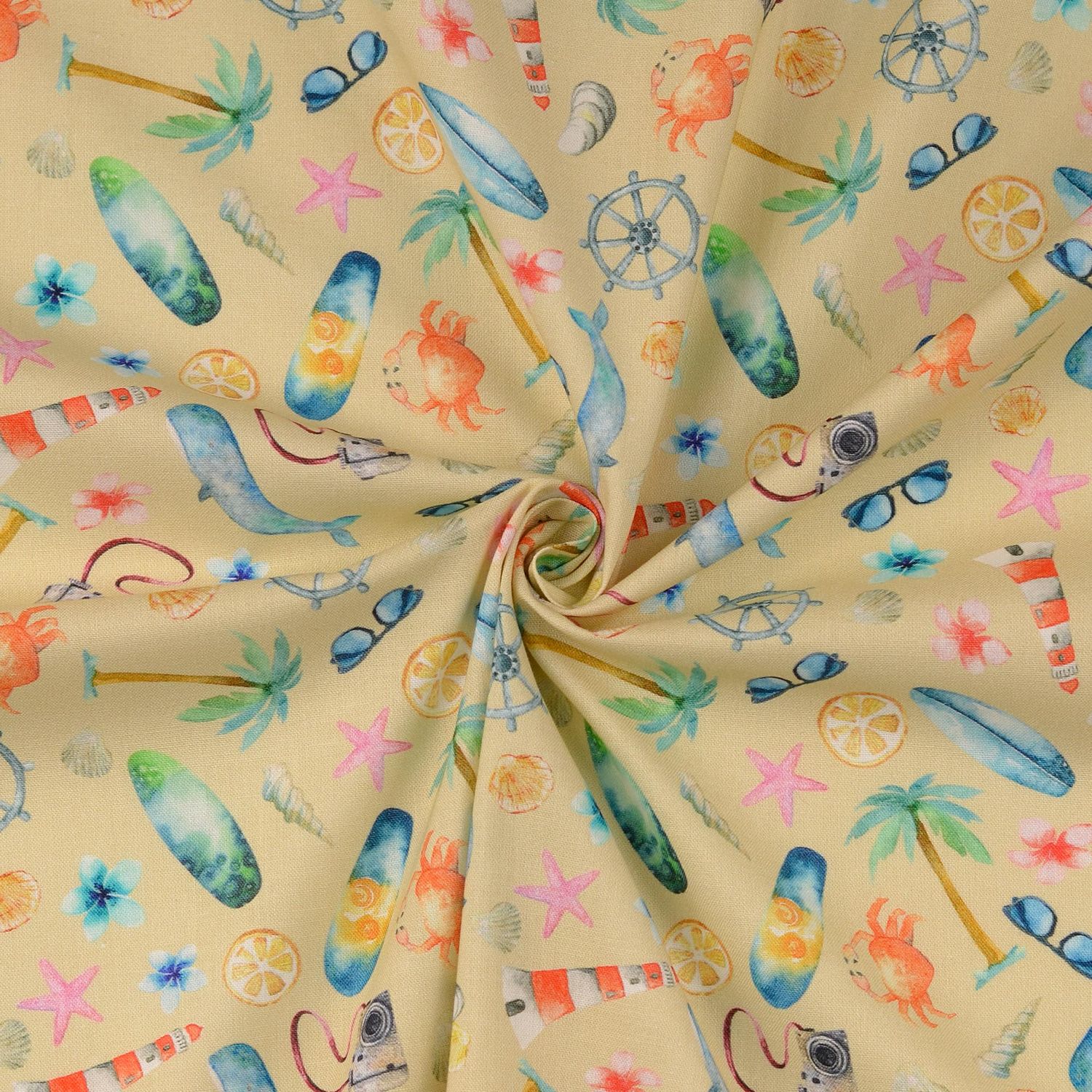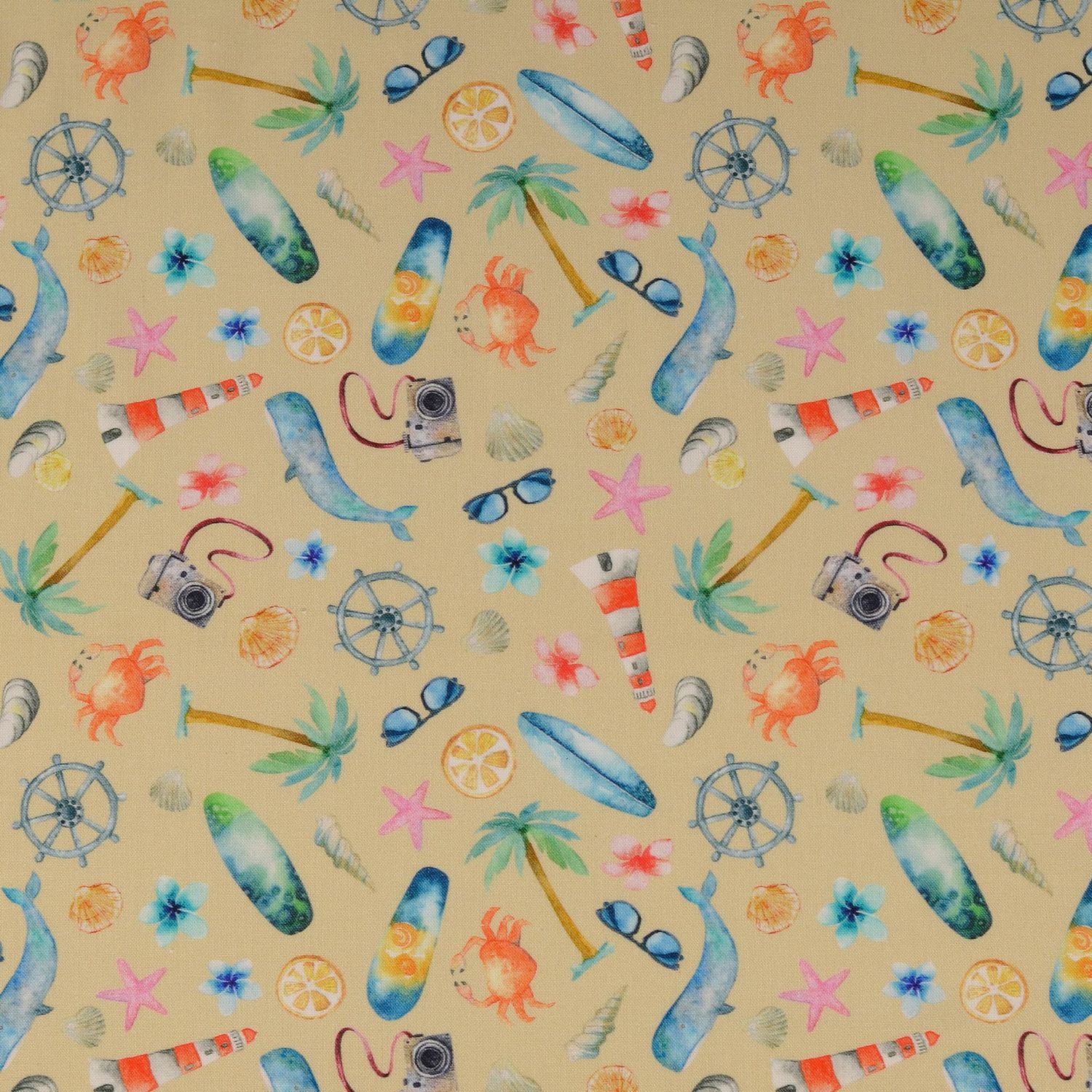 Bomullscretonne - digitaltryck Semester vid havet sand