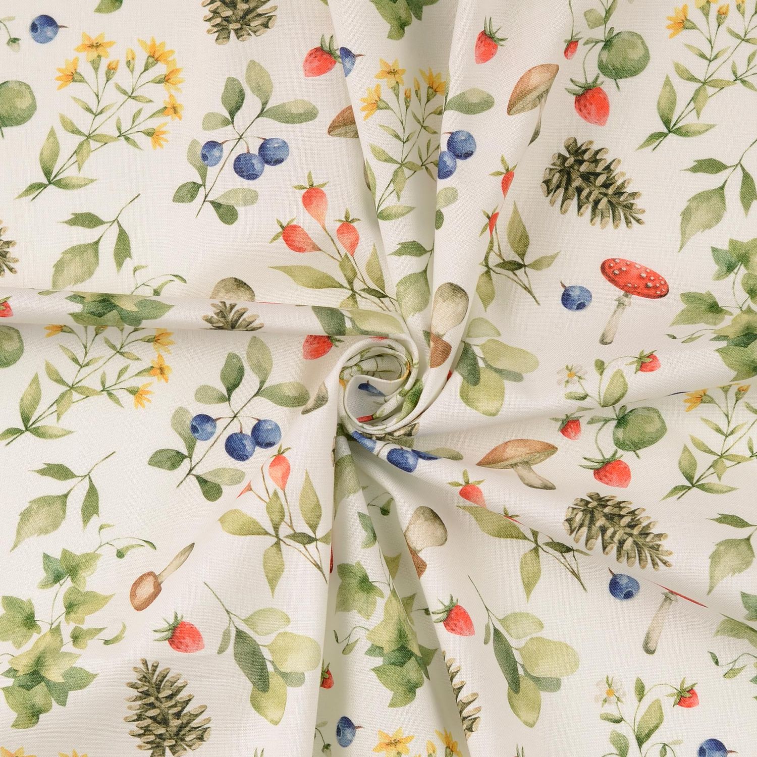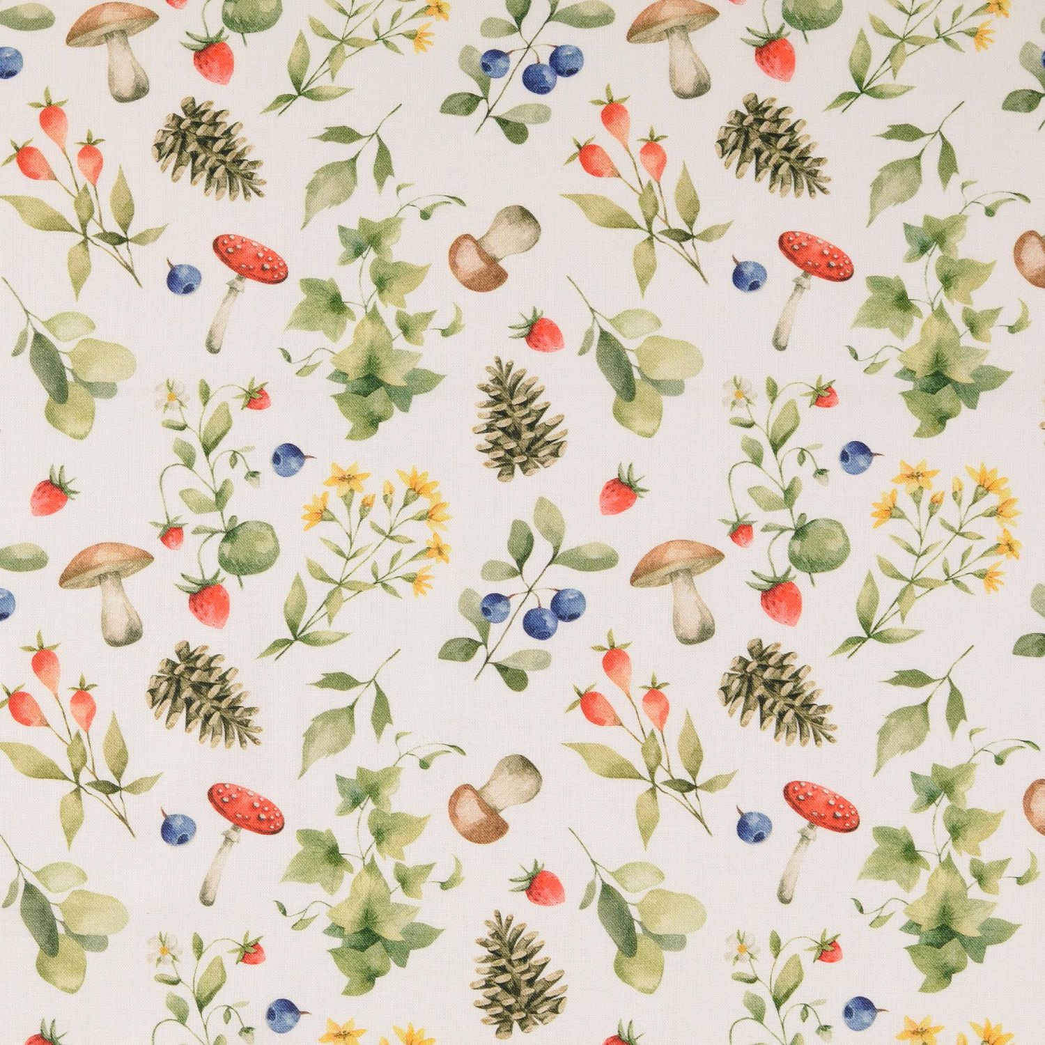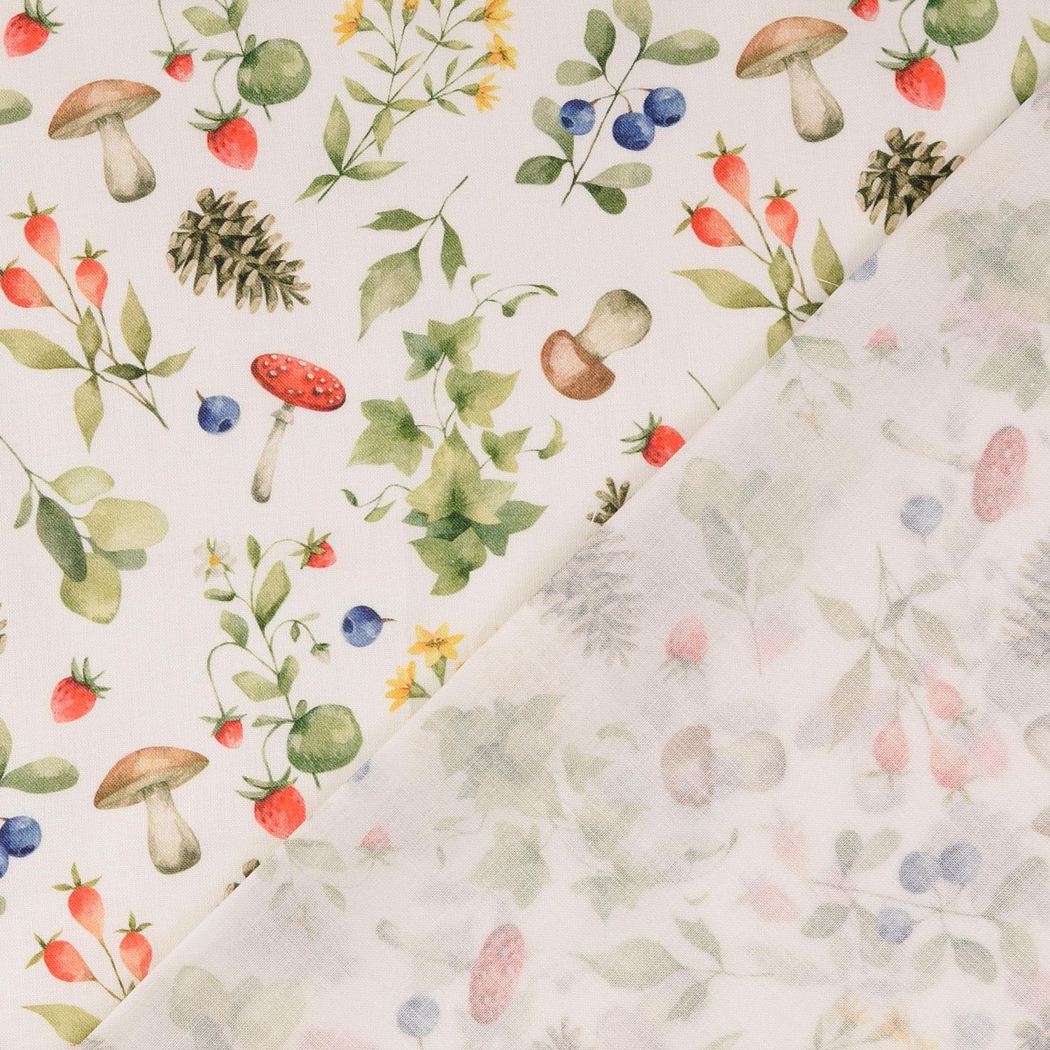 Bomullscretonne - Digitaltryck Skogsbär Vit