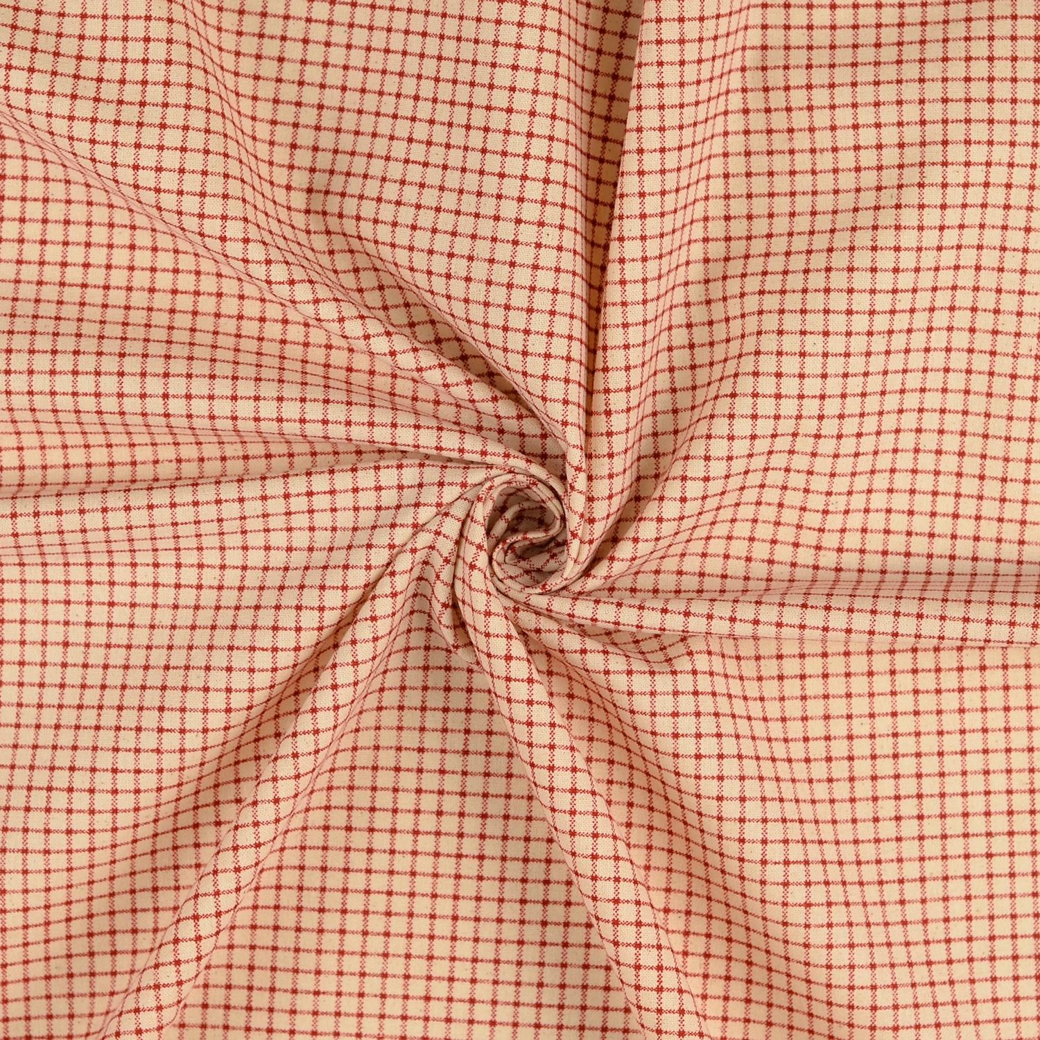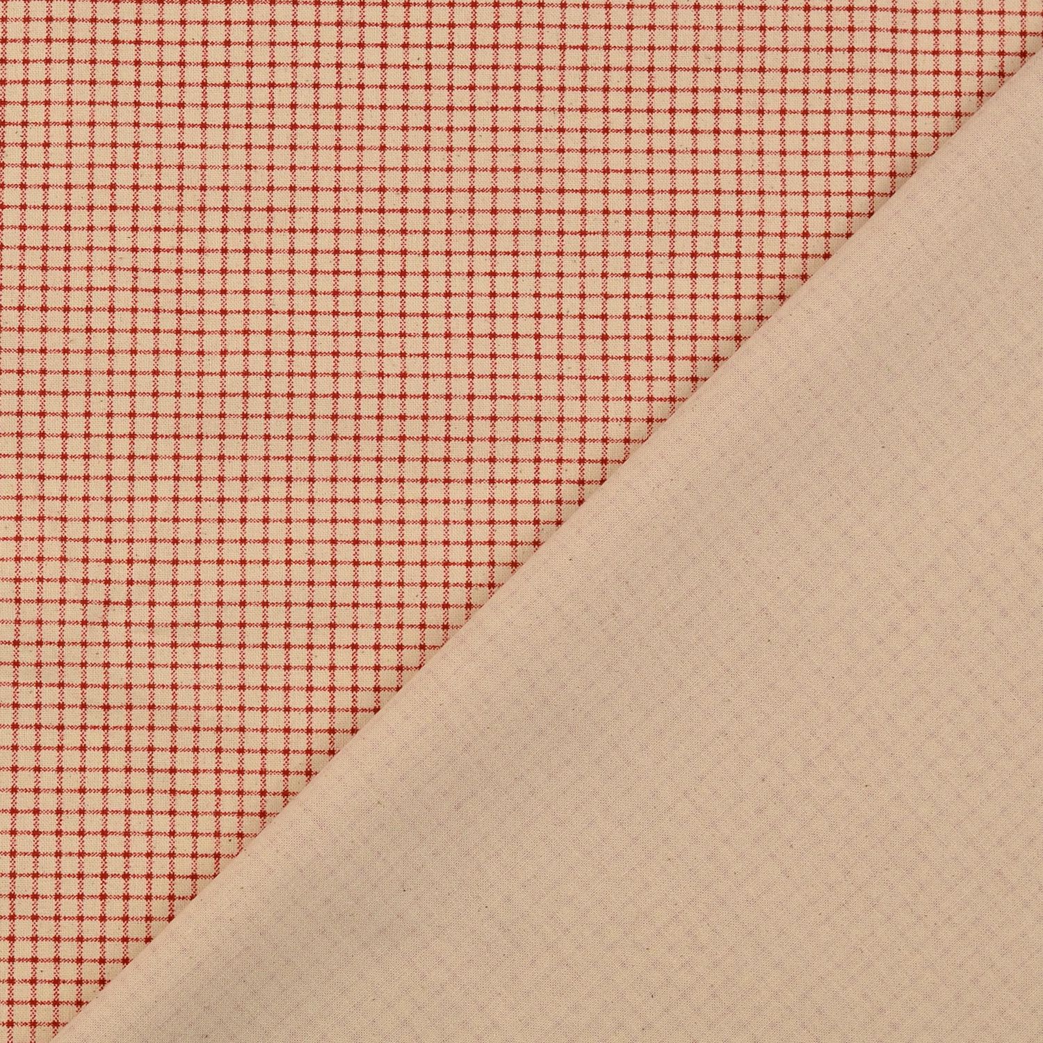 Bomullscretonne Vintage - Rutig Beige Röd