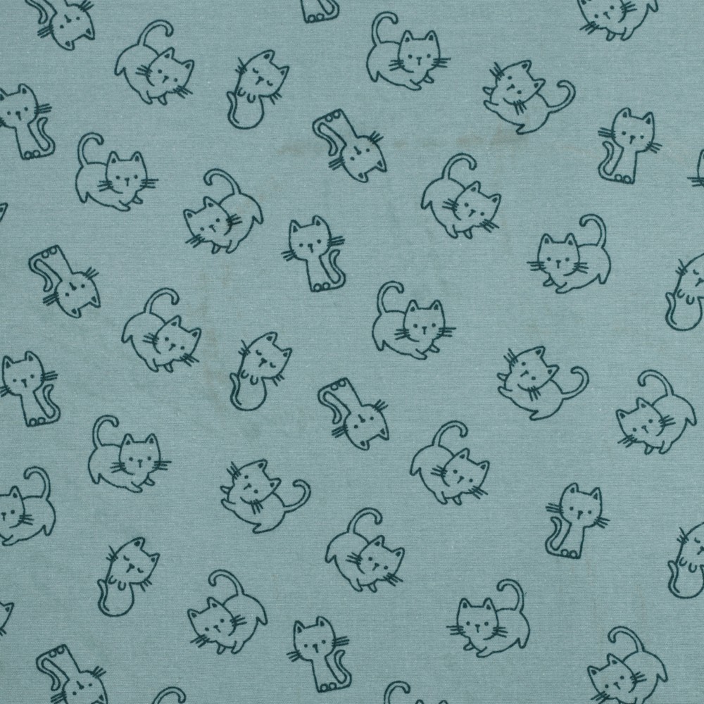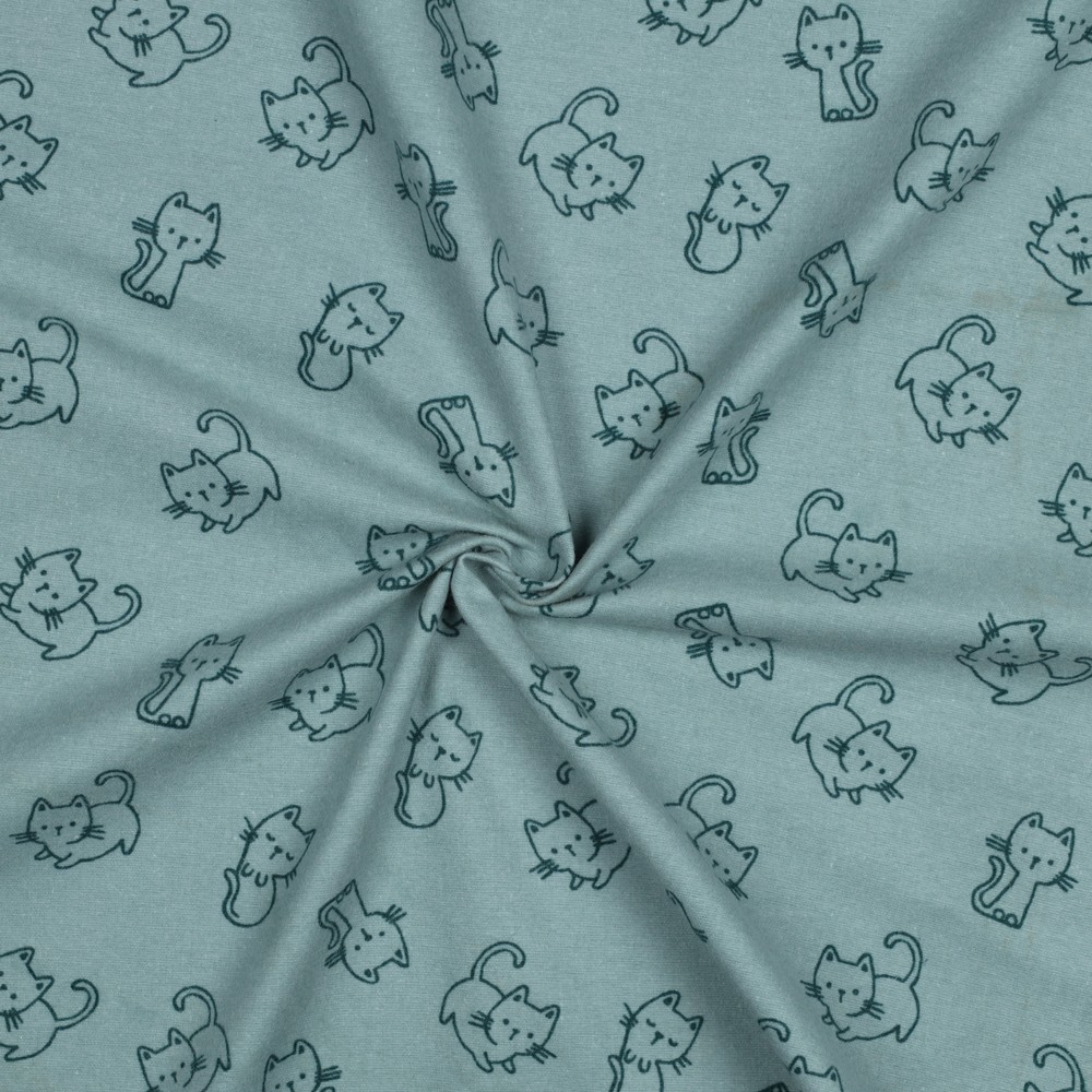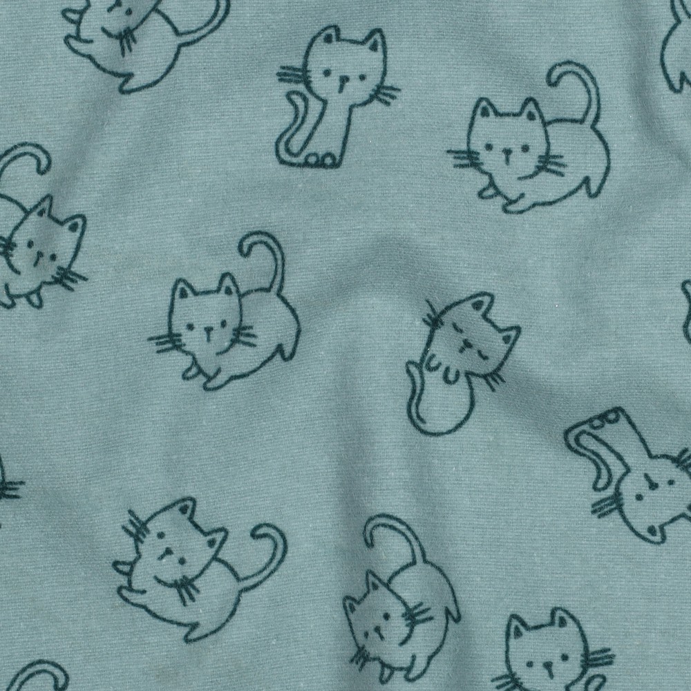 Bomullsflanell - mörka mintfärgade katter