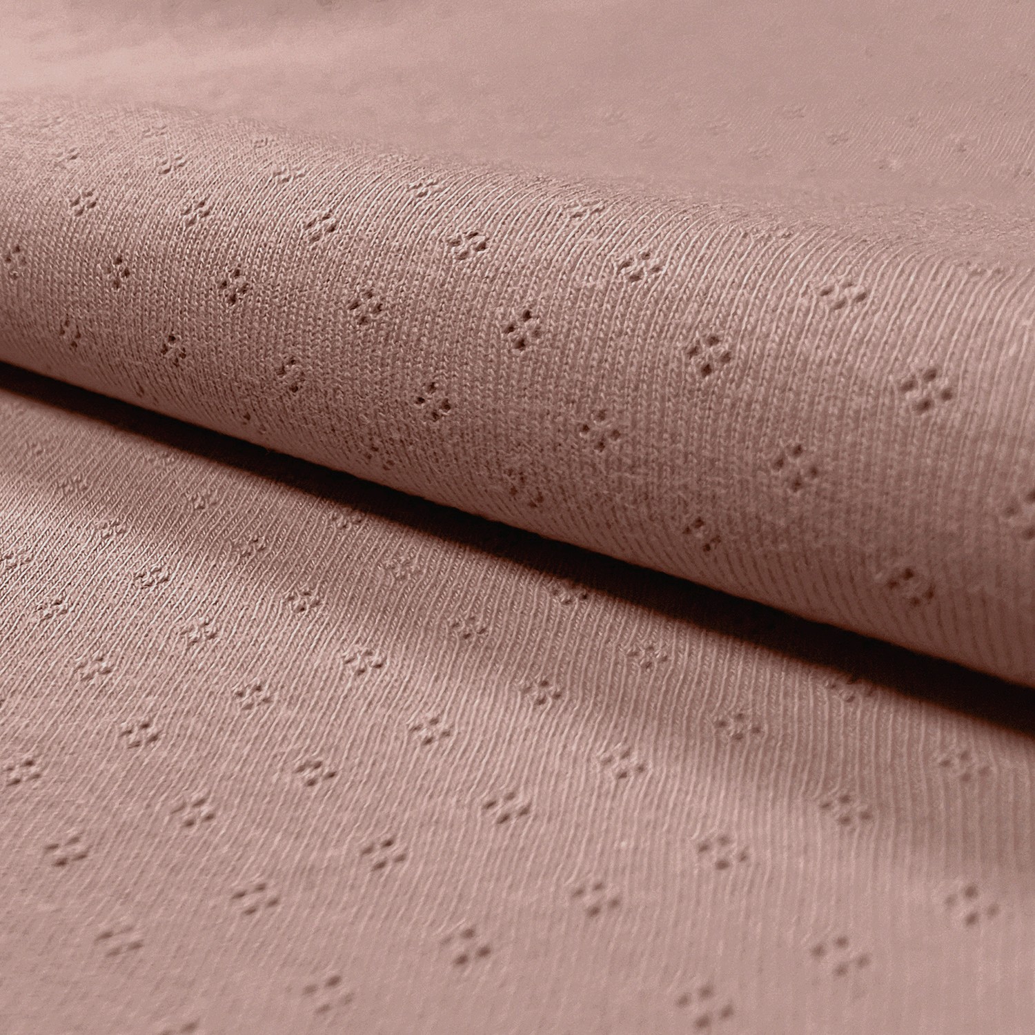 Denna skira ajourjersey ger dina syprojekt en särskilt elegant och samtidigt mysig känsla. Det fina hålmönstret är diskret präglat och skapar en vacker, strukturerad yta – perfekt för alla som älskar enkel elegans med en touch av romantik.