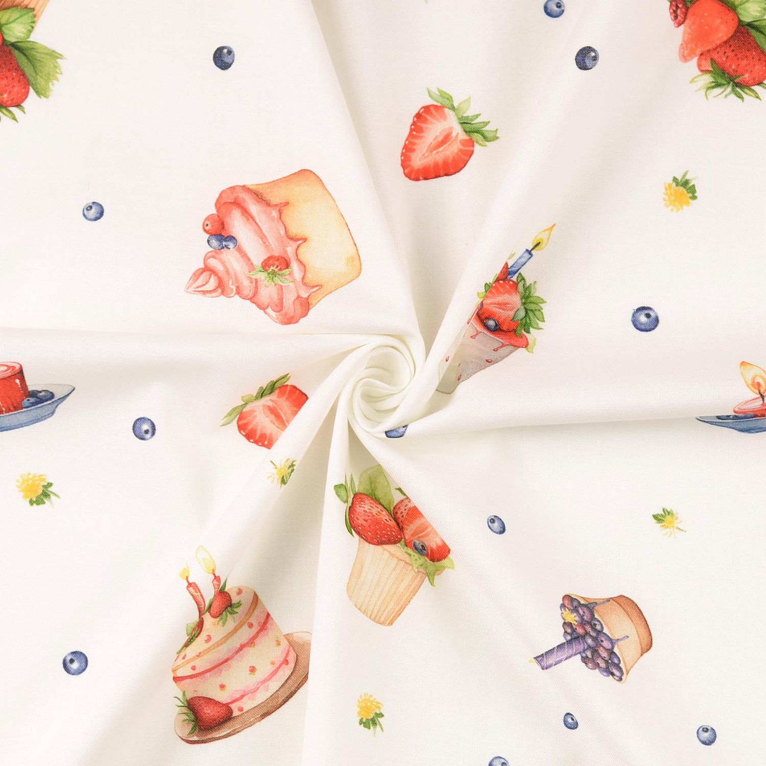 Den detaljerade digitaltrycket framhäver varje delikatess skarpt – perfekt för alla som älskar det speciella. Oavsett om det gäller förkläden, kökstextilier, bordsdukar, kuddfodral, cafédekoration eller barnrum: detta tyg skapar snabbt en glad och inbjudande atmosfär.