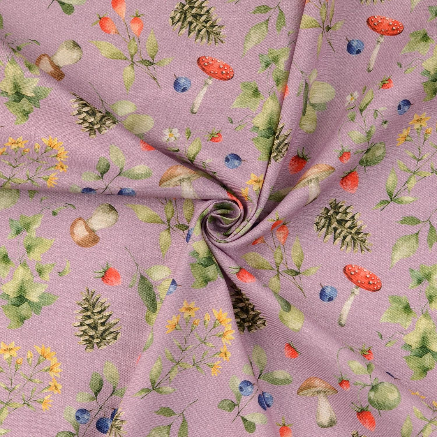 Detta tyg är idealiskt för höst- och vinter-symprojekt, men också för alla som älskar skog- och bärrtema året runt: oavsett om det är kuddar, bordsdekoration, förkläden, påsar, barnkläder eller kärleksfulla accessoarer – med detta skogsbärsmotiv blir dina syidéer riktiga blickfång.