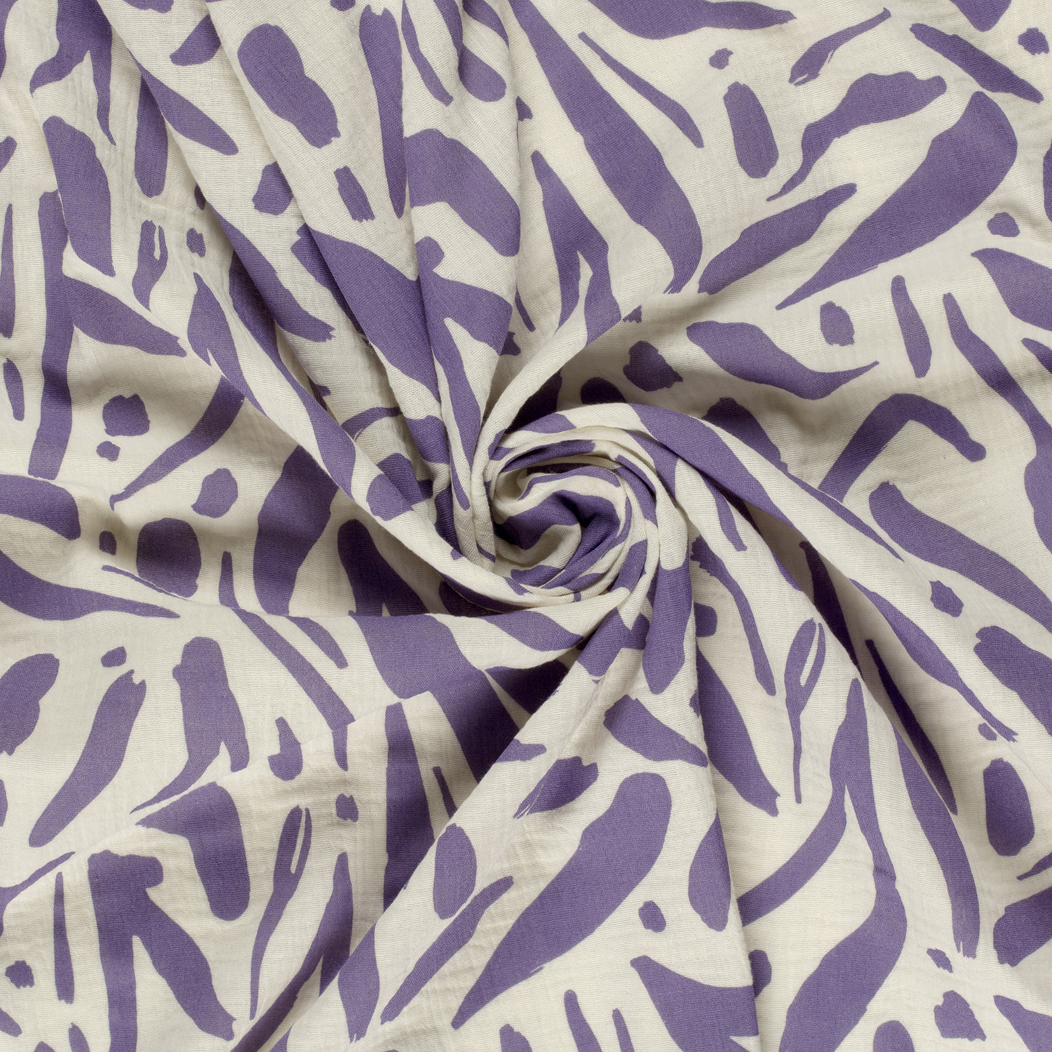 Bomullsmusselin - Double Gauze blad abstrakt lila