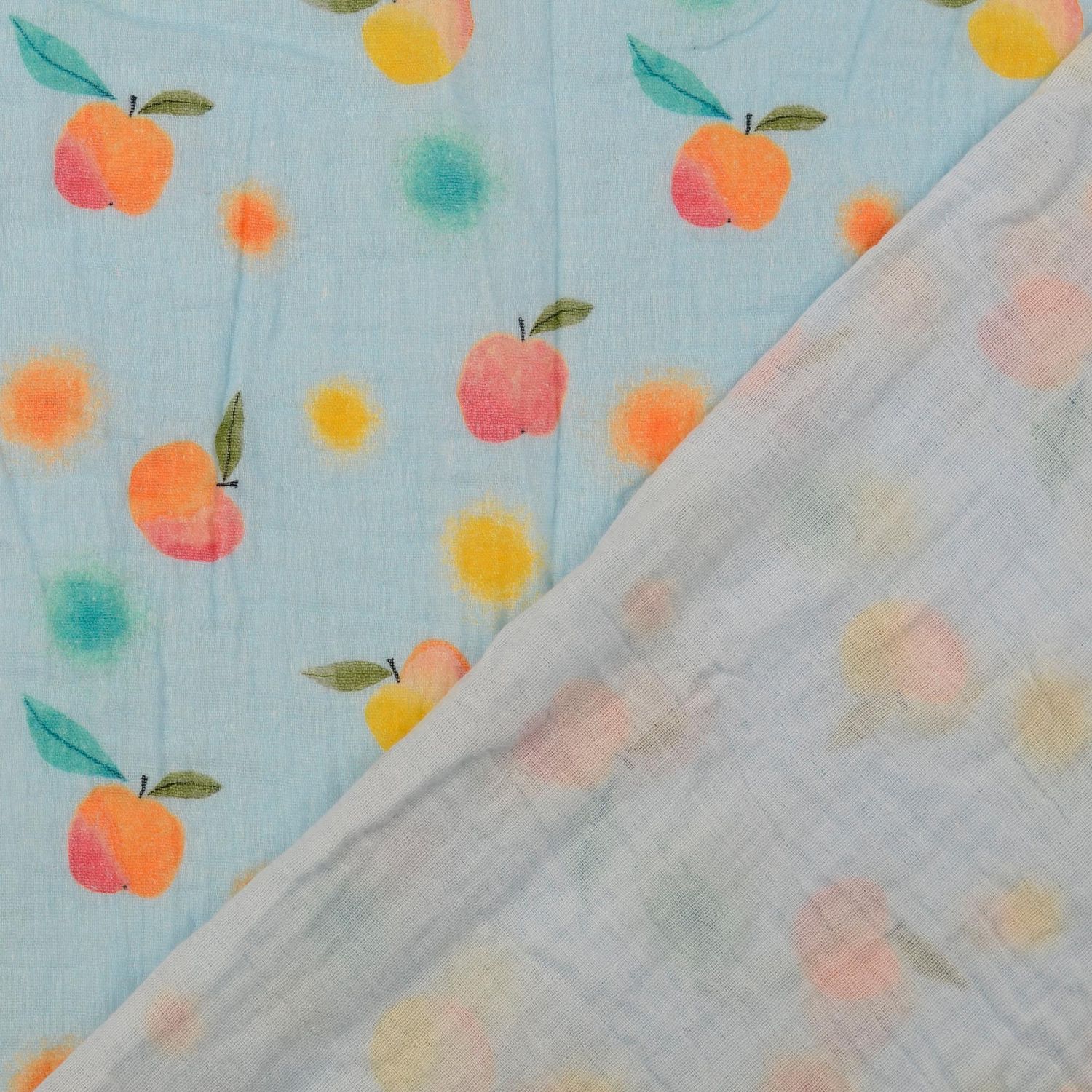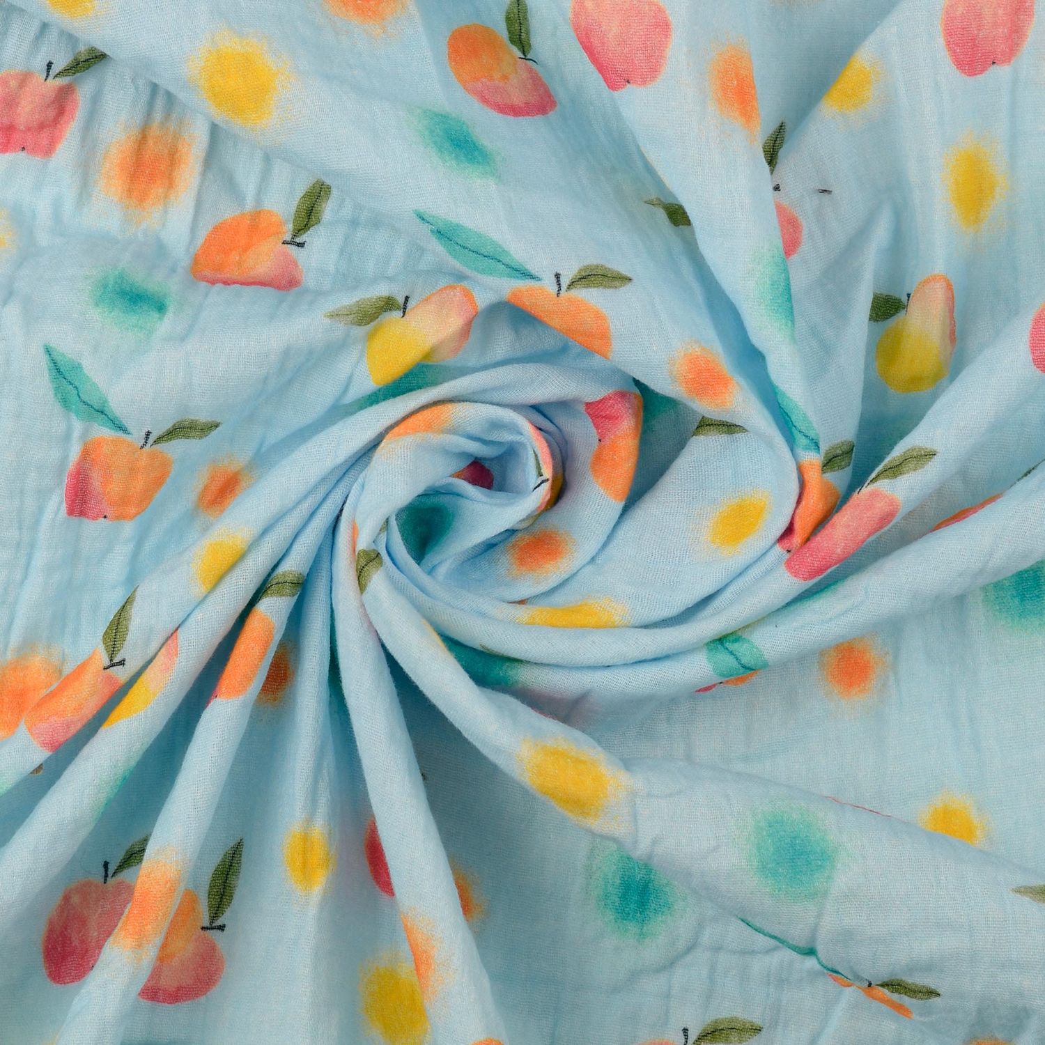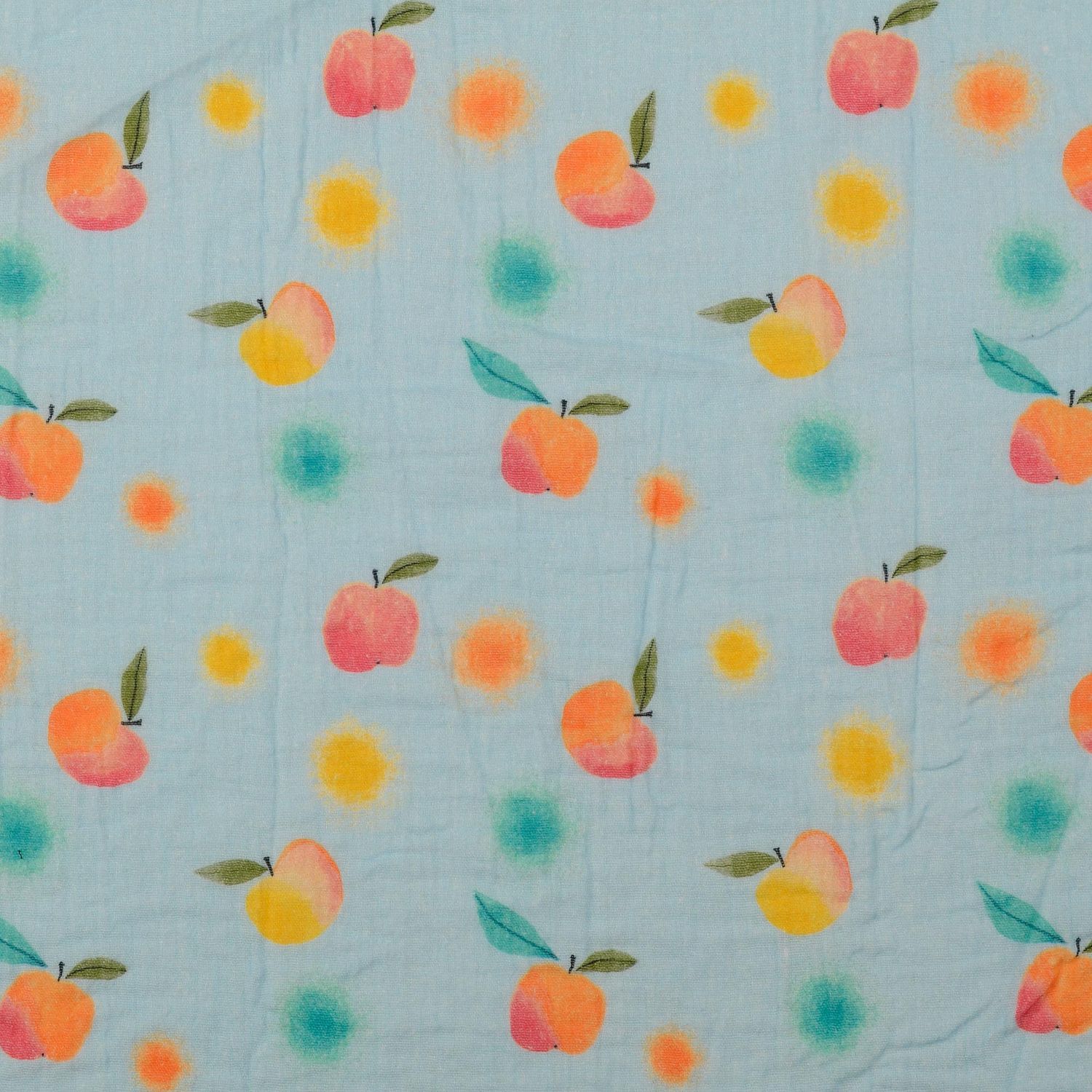 Bomullsmusselin - Double Gauze digitaltryck äpplen ljusblå