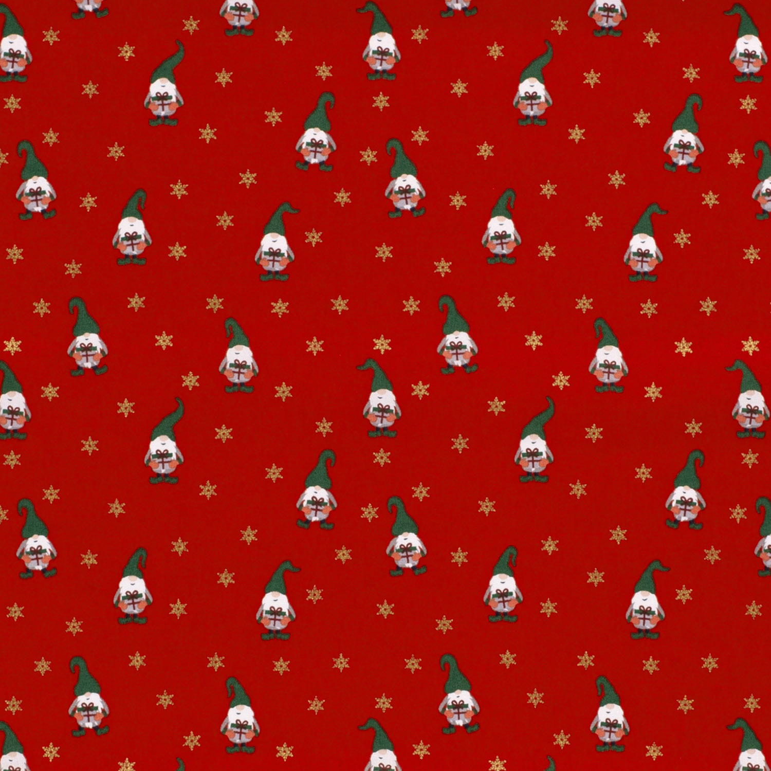 Detta glada jultyget skapar omedelbart julstämning i ditt syrum: På en lysande röd bakgrund leker små julnissar med sina typiska spetsiga mössor, omgivna av vinterdetaljer som stjärnor, snöflingor och fina ornament. De lekfulla figurerna är kärleksfullt ritade och hålls i harmoniska julfärger som kräm, vitt, grönt och diskreta guldfärger – perfekt för dig som gillar klassiskt utan att det blir kitschigt.