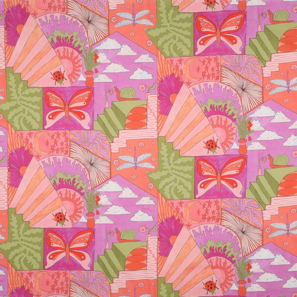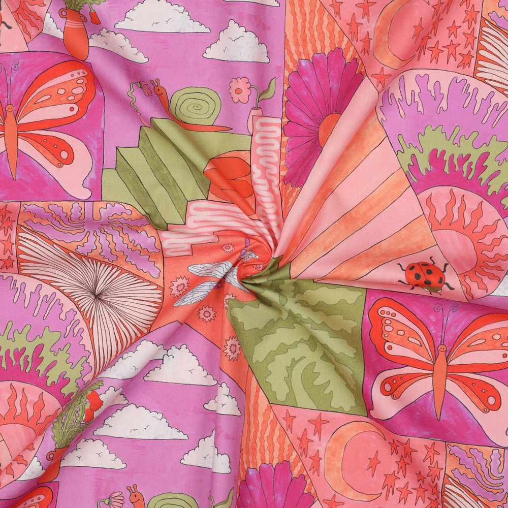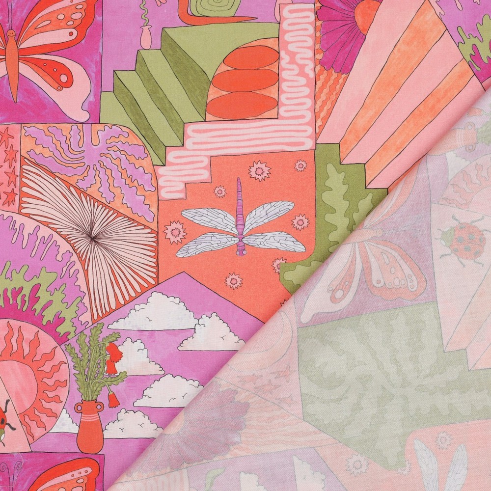 Bomullspoplin - Nerida Hansen digitaltryck Creatures Pink