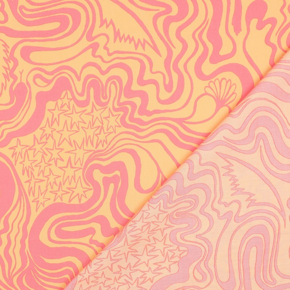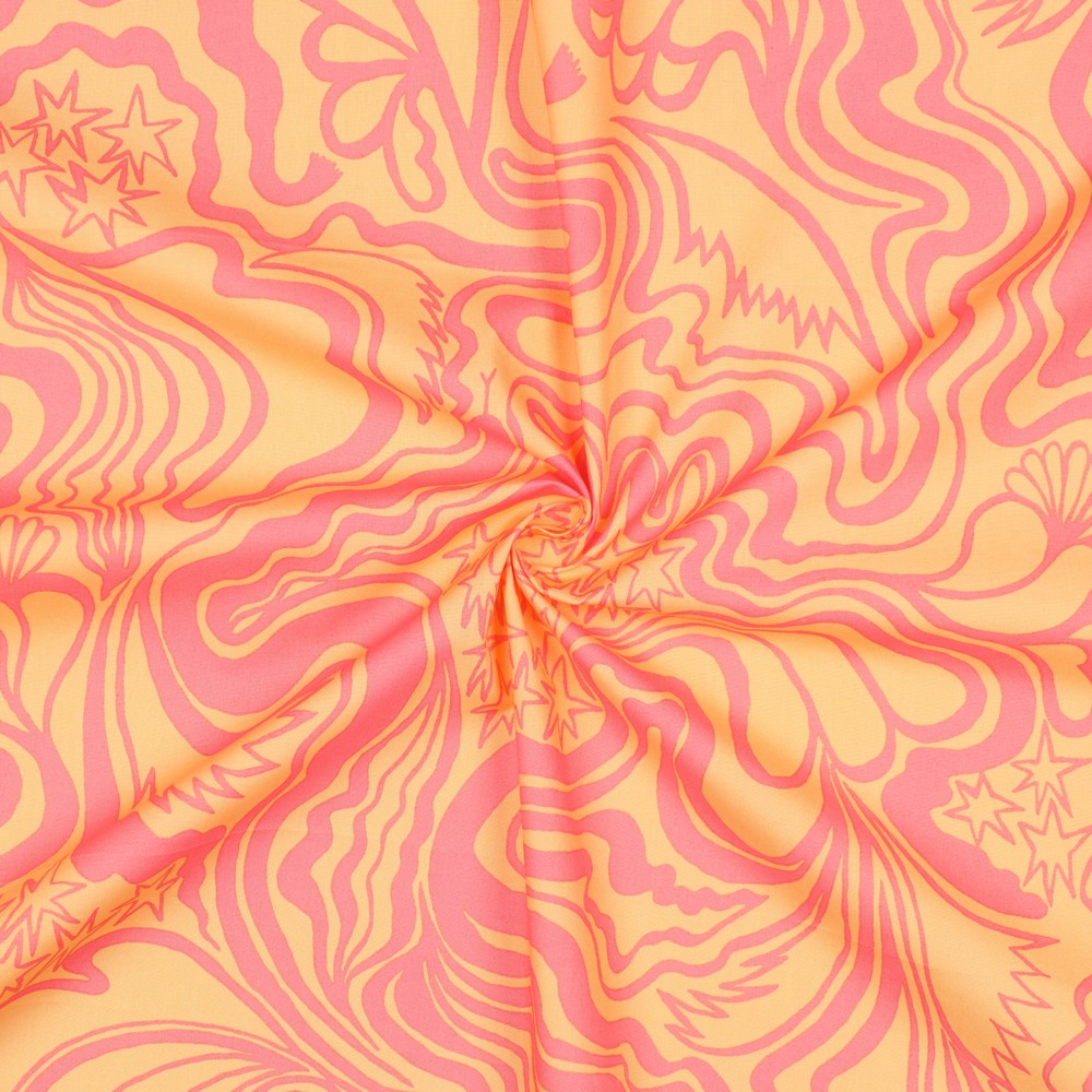 Ett livligt blickfång för dina sömnadsprojekt: Denna bomullspoplin från designstudion Nerida Hansen har ett modernt, konstnärligt tryck i varma orange toner. Mjuka färggradienter, stiliserade former och en fräsch, grafisk look ger tyget ett livligt men ändå harmoniskt utseende.
