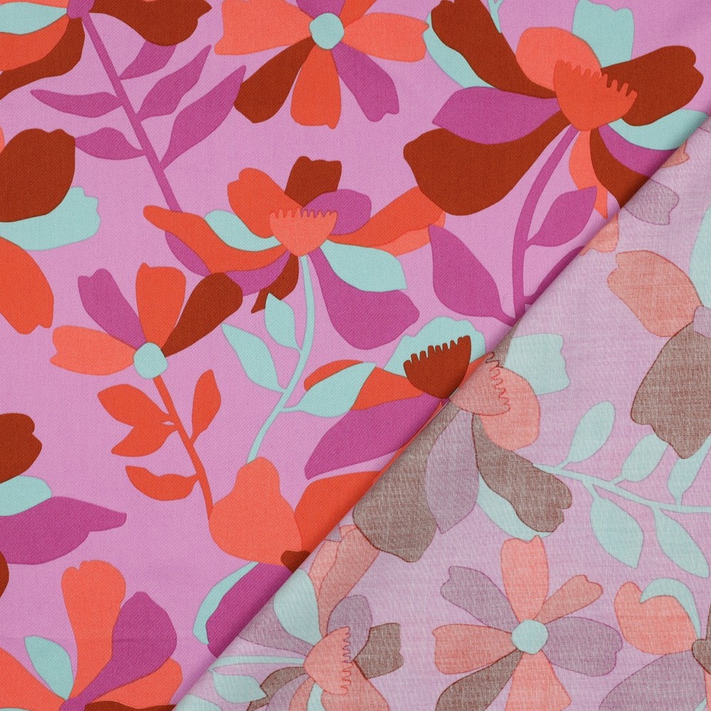 Den eleganta satinglansen framhäver mönstrets feminina utstrålning och gör detta tyg idealiskt för speciella sömnadsprojekt: från luftiga blusar, klänningar och kjolar till eleganta hemtillbehör som kuddar och vackra handgjorda presenter. En design som omedelbart gör dig på gott humör och som ger en fräsch, elegant färgklick till alla kläder och vardagsrum.
