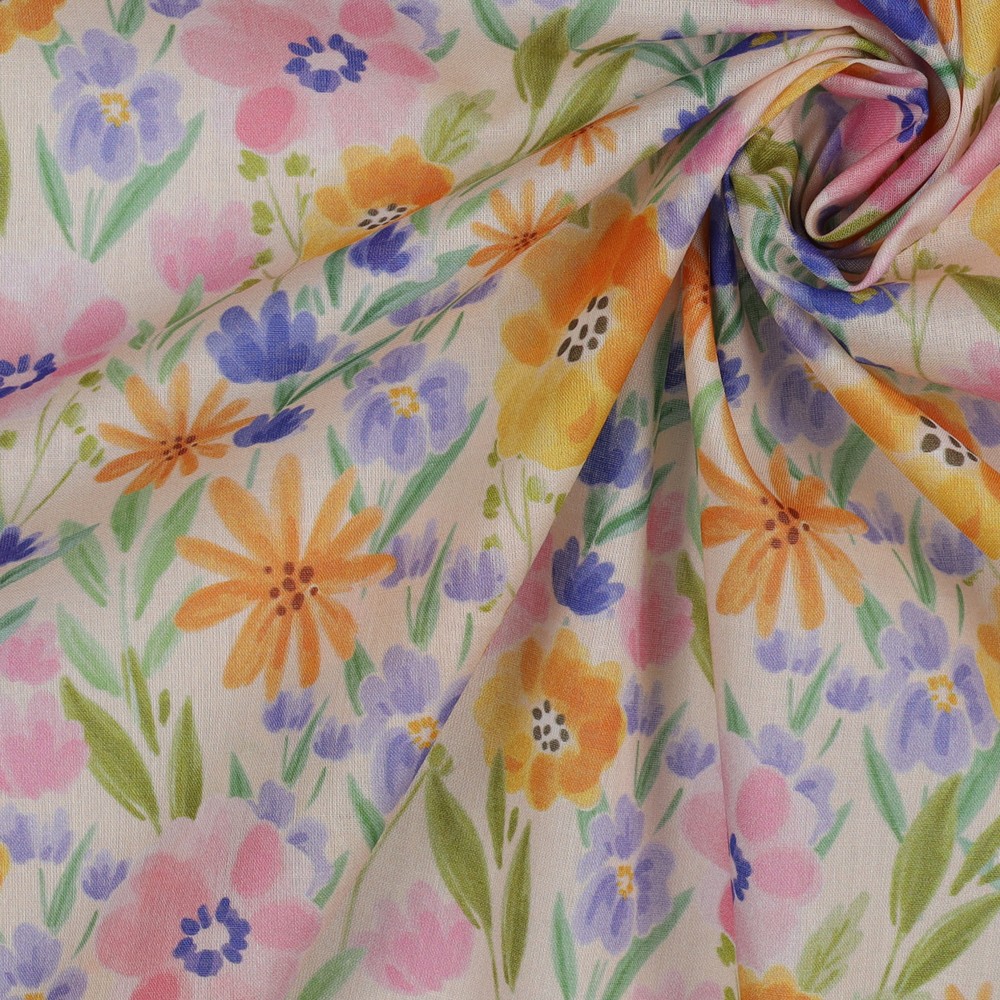 Bomullsvoile - Digitaltryck blomsteräng multicolor