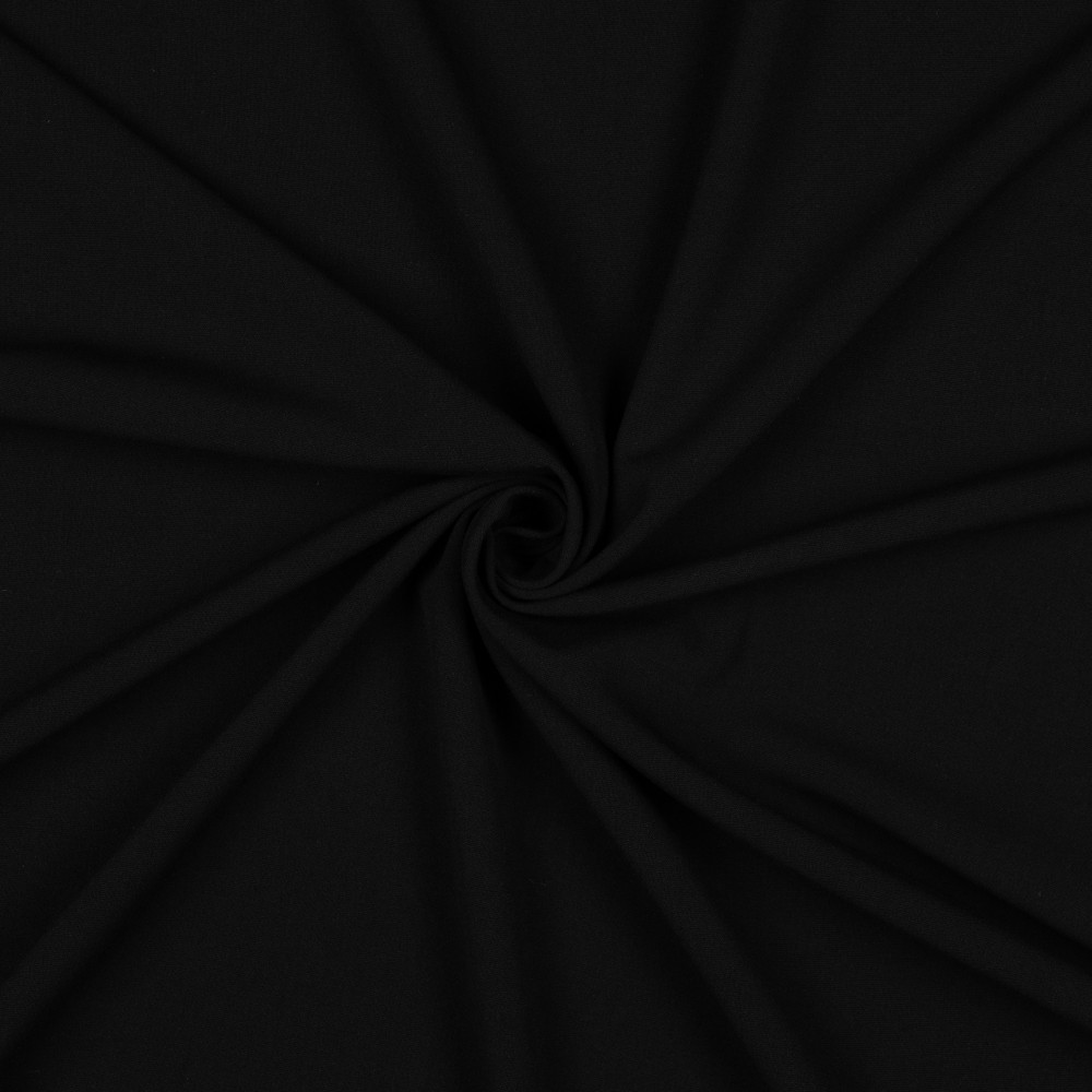Detta ädla, djupsvarta byxtyg är den perfekta basen för en tidlös, stilfull garderob. Dess jämnt släta fall och tvärelastiska kvalitet ger en fin linjeföring och hög bärkomfort – idealiskt för byxor, kjolar, kavajer eller eleganta jumpsuits.
