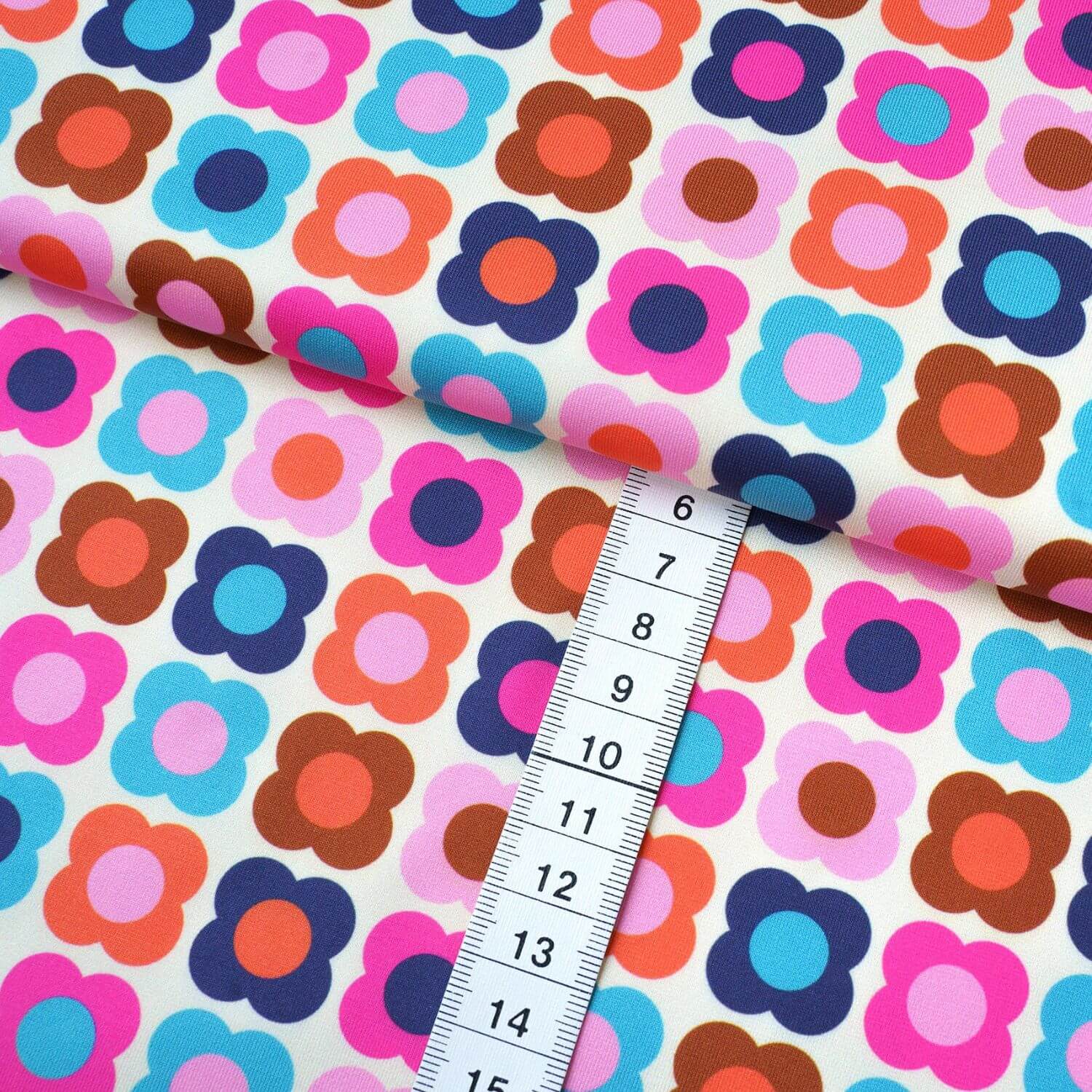Kombinera tyget med enfärgade tyger eller manschetter i matchande färger för att framhäva det färgstarka mönstret ännu mer, eller använd det som en highlight i inlägg och detaljer. Med det här tyget kan du sy aktiva kläder som inte bara är funktionella utan som också visar din personlighet och din kärlek till färg.