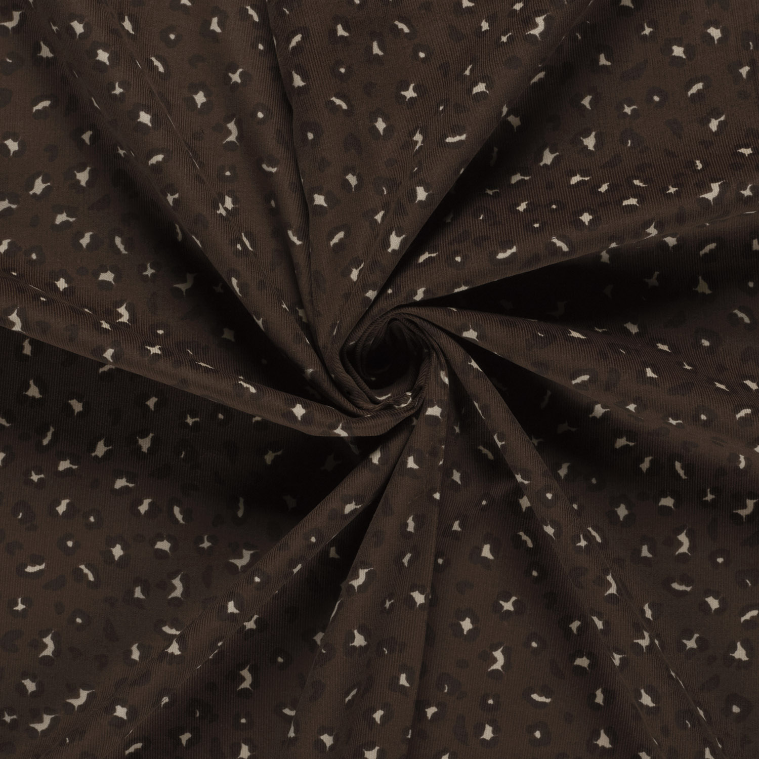 Denna babycord ger varje syprojekt en stilfull och samtidigt lekfull känsla. Det fina, jämna leopardmönstret i varm chokladbrun och mjuka beigefärger känns modernt men ändå tidlöst – perfekt för alla som älskar djurtryck men vill ha det diskret.