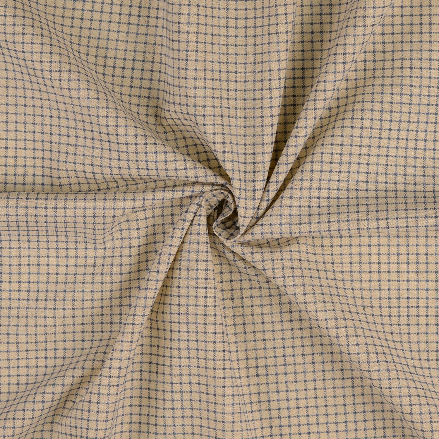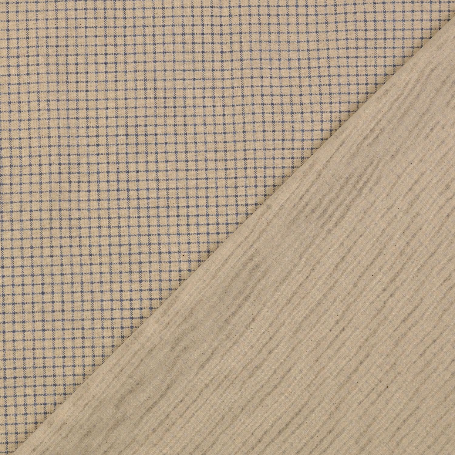 Bomullscretonne - Rutig Beige Blå