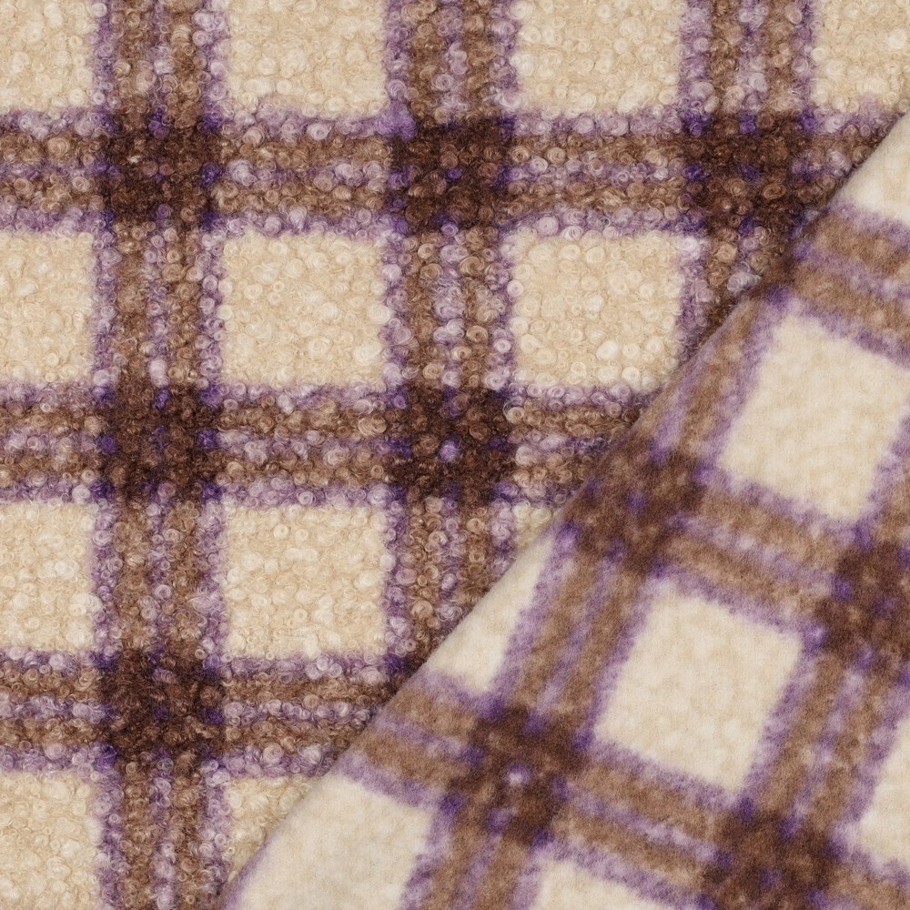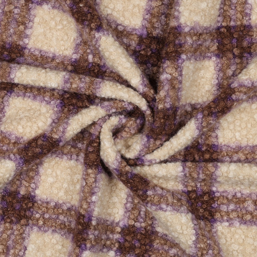 Ett tyg som är gjort för snygga feelgood-ögonblick: Detta eleganta bouclétyg för kappor har ett klassiskt rutmönster som ger ett mycket speciellt modeintryck tack vare den moderna färgkombinationen av mjukt lila, varm beige och subtila naturtoner.