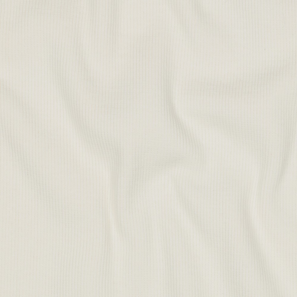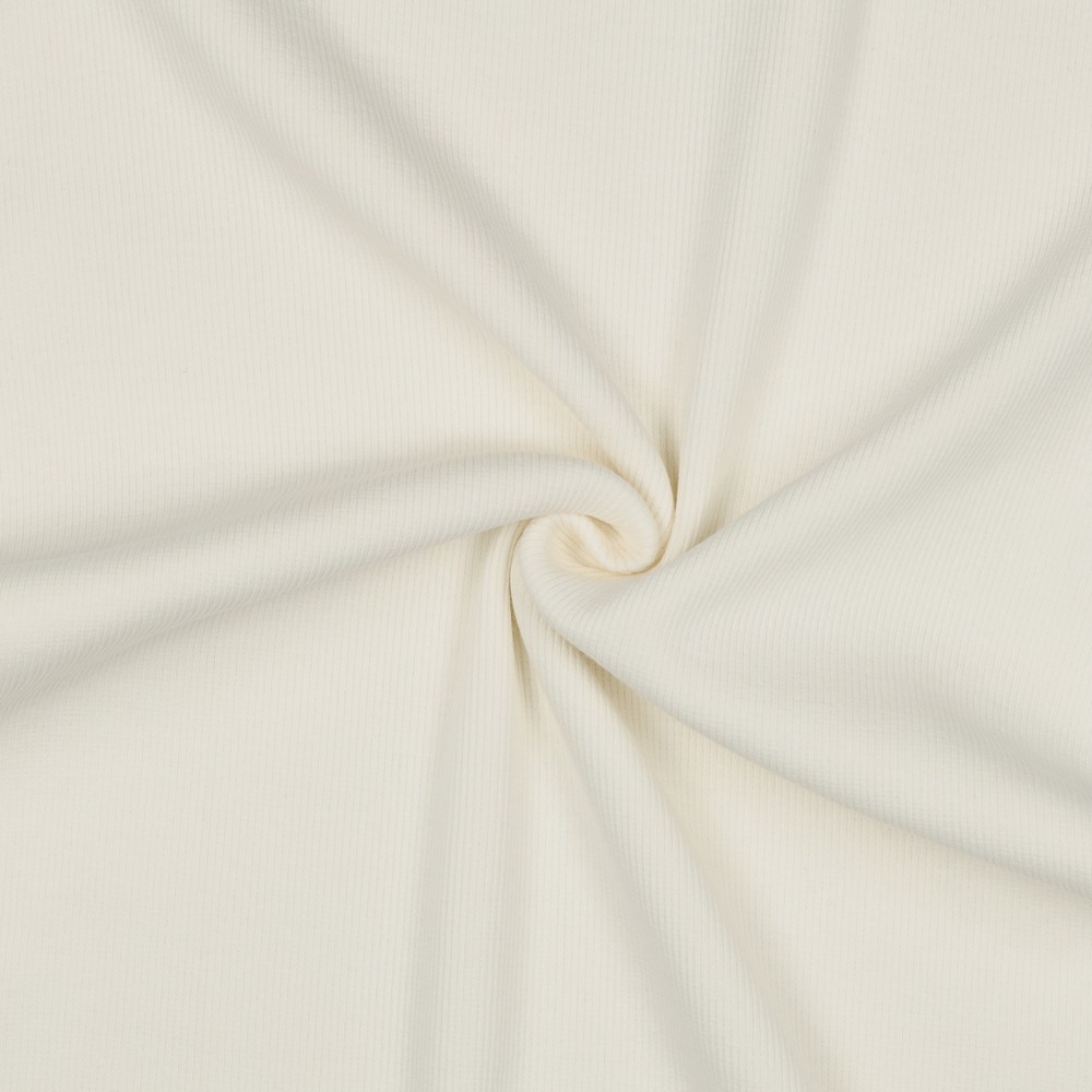 Detta grovribbade muddband i en mjuk cremefärg är en verklig allrounder för dina sömnadsprojekt. Den fina, jämna ribbstickningen ger tyget en elegant struktur samtidigt som den erbjuder skön elasticitet – perfekt för avslut på ärmar, fållar, ringningar eller bekväma midjeband.