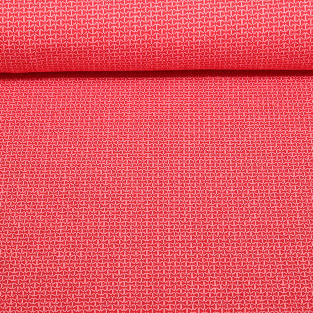 Denna jacquardjersey förtrollar med sin lekfulla design: små skalbaggar och insekter tumlar runt på en varm, fyllig röd bakgrund, fint invävda som delikata rosettmotiv. Ton-i-ton-strukturen ger tyget en sofistikerad, lätt tredimensionell look som skimrar subtilt och skapar djup beroende på ljuset.