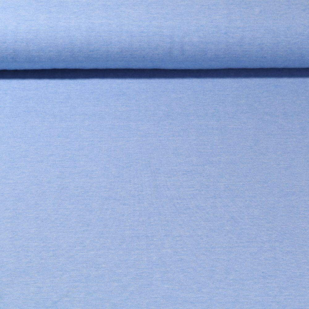 En touch av sommar på tyget: denna vackra organiska jersey förtrollar med sin fina ljusblå färg och livliga melange-look. Fina, ljusare och mörkare trådar smälter samman och skapar ett lätt marmorerat utseende som är modernt, avslappnat och underbart mjukt på samma gång.