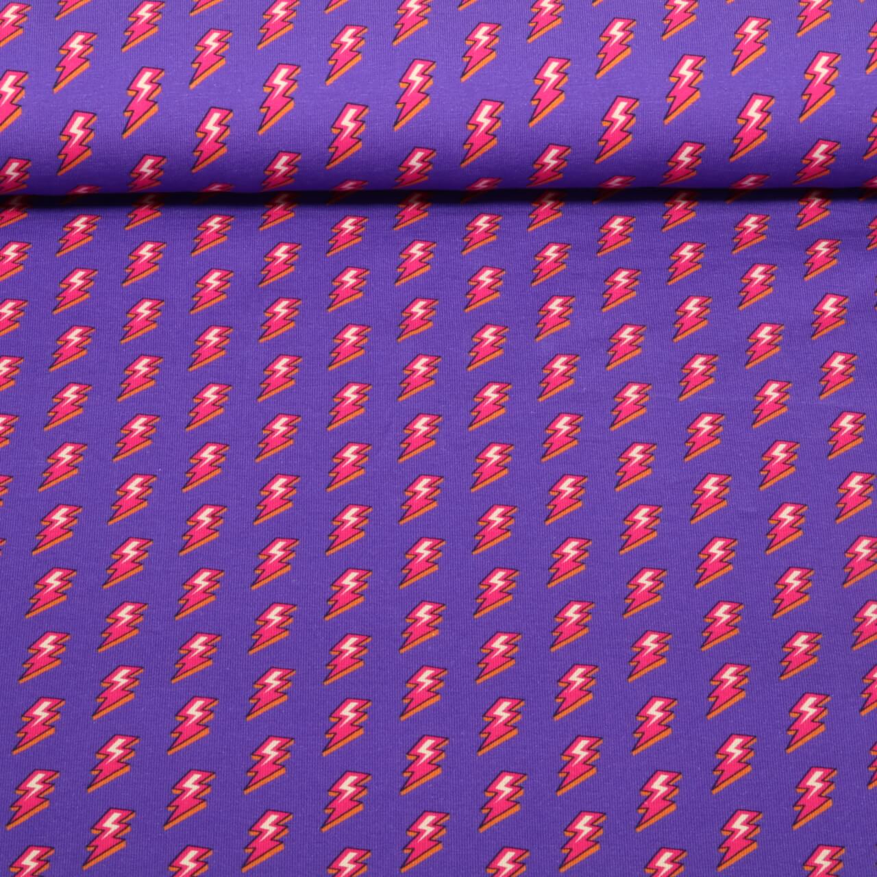 Denna uttrycksfulla jersey ger ren kraft till dina sömnadsprojekt! Designen har dynamiska, grafiska former och bokstäver som sprudlar av energi. Levande lila och violetta toner möter ljusa accenter i rosa, orange och gult - en modern, urban look som omedelbart fångar ögat.
