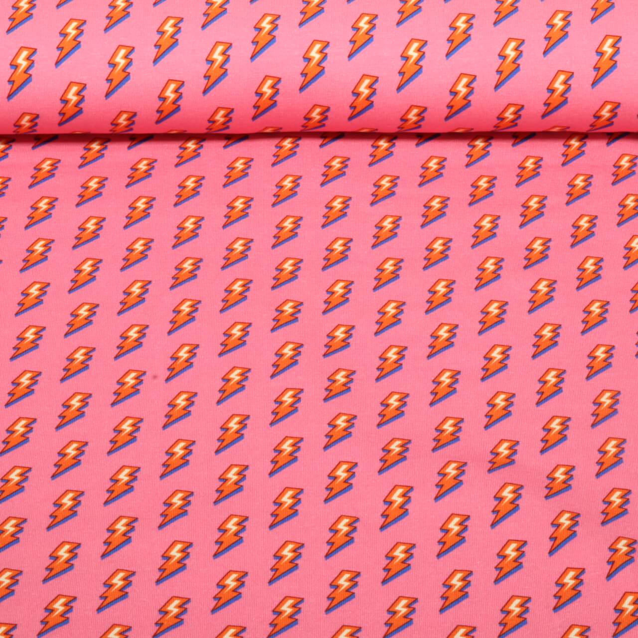 Ett tyg som omedelbart får dig på gott humör: färgglada blixtar, stjärnor och små symboler i ljusgult, orange, turkost, blått och vitt tävlar med varandra på en stark, fyllig rosa bakgrund. Däremellan döljer sig coola, handskrivna statements - som små meddelanden som ger ditt sömnadsprojekt extra kraft och personlighet.