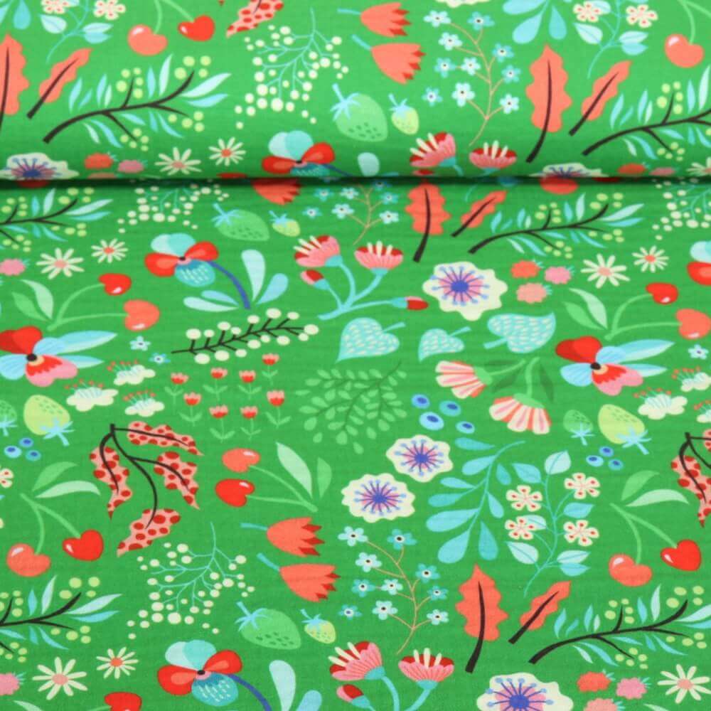 Ekologisk muslin - Slät - Digitalt tryck Picnic i parken Grön