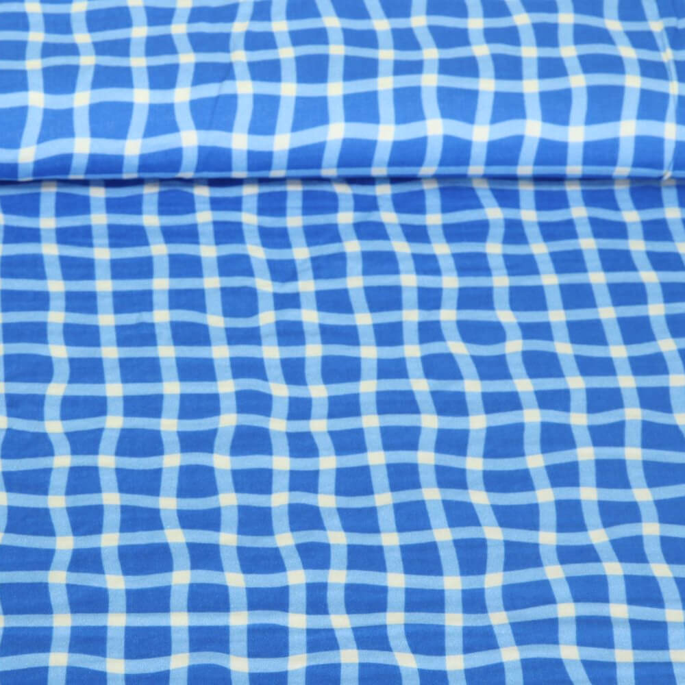 Ekologisk Muslin Smooth - Digital Print Check Blå