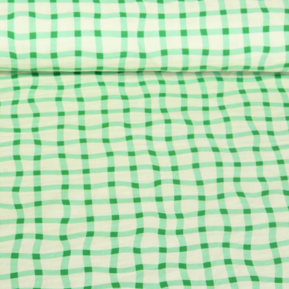 Ekologisk Muslin Smooth - Digital Print Check Green