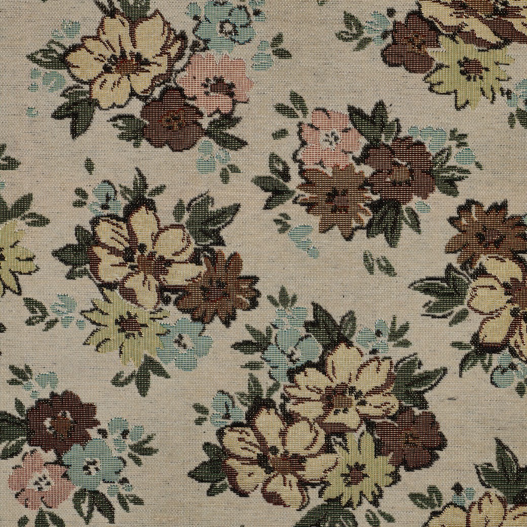 Gobelintyg – Chenilleblommor guld beige