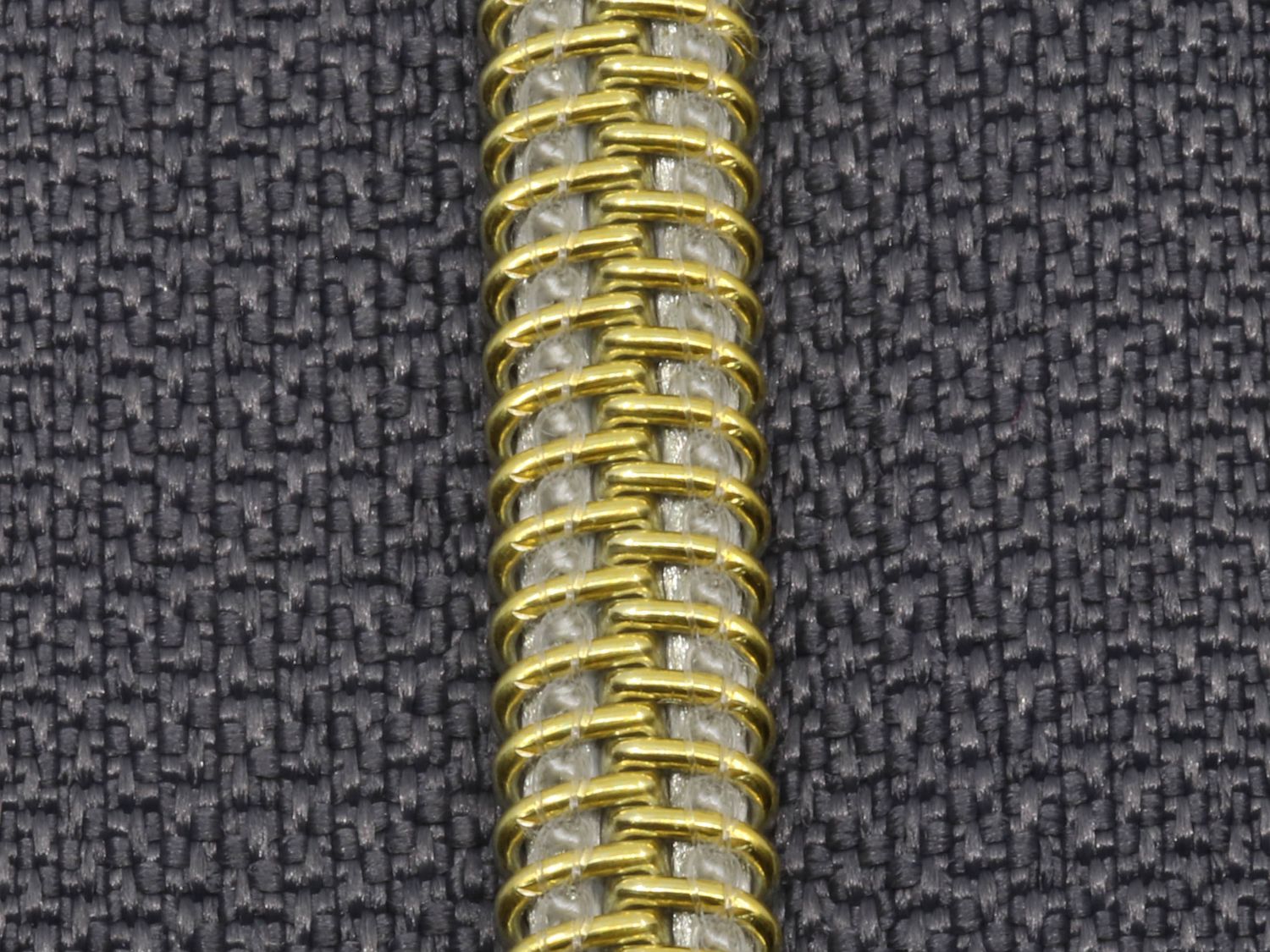 Guld blixtlås metalliserad 6,5mm pärla | 1m | mörkgrå D306