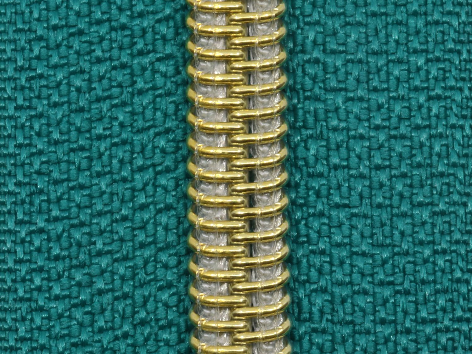 Guld blixtlås metalliserad 6,5mm pärla | 1m | Mörkt turkos