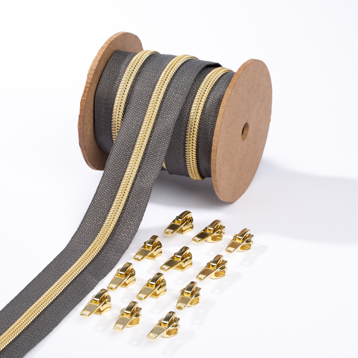 Guld blixtlås metalliserad 6,5mm pärla | 3m | antracit B39