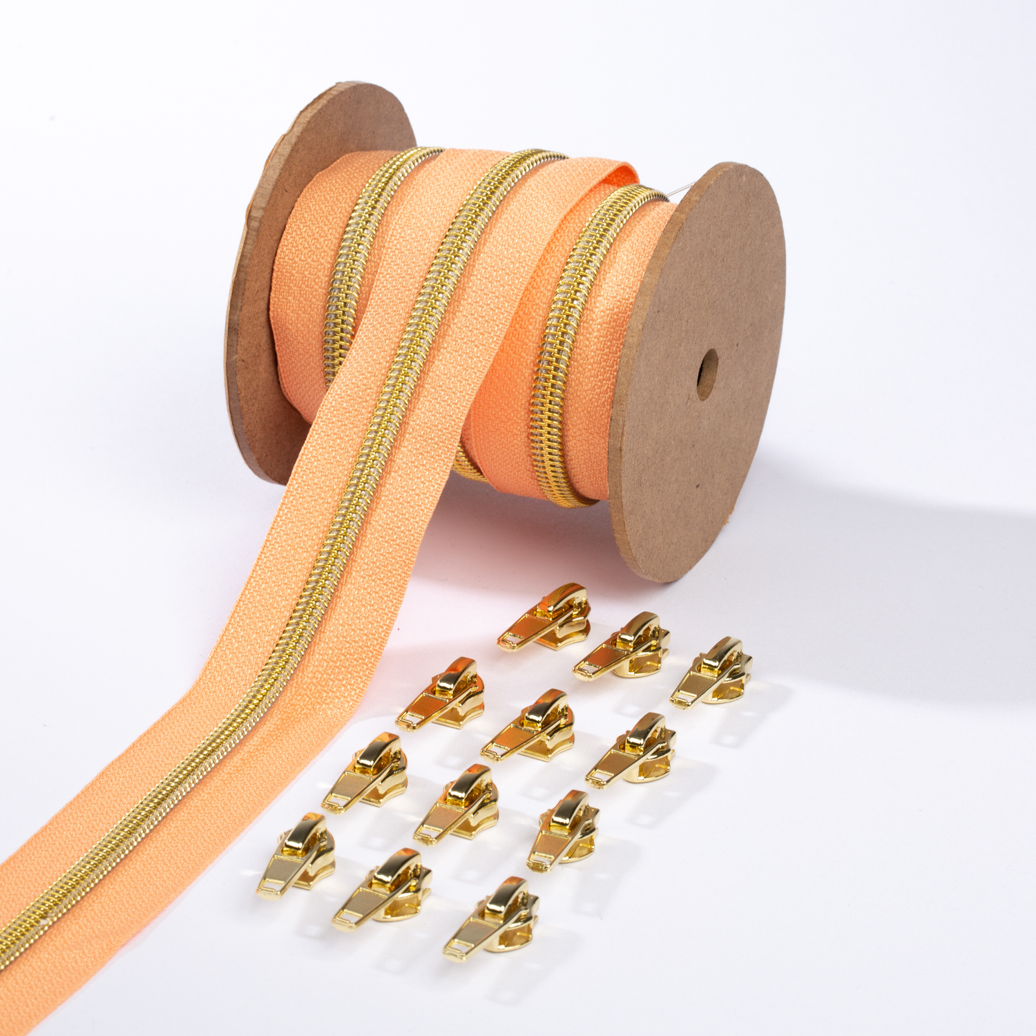 Guld blixtlås metalliserad 6,5mm pärla | 3m | Aprikos D114