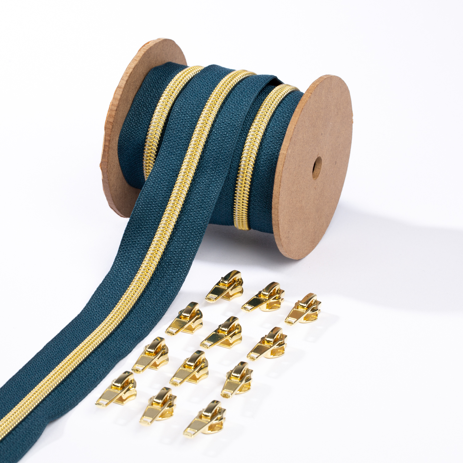 Guld blixtlås metalliserad 6,5mm pärla | 3m | bensin