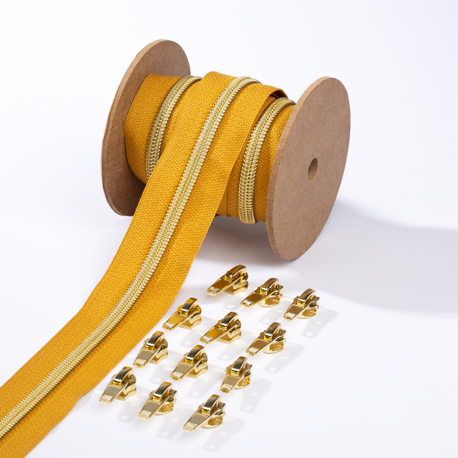 Guld blixtlås metalliserad 6,5mm pärla | 3m | Curry D087