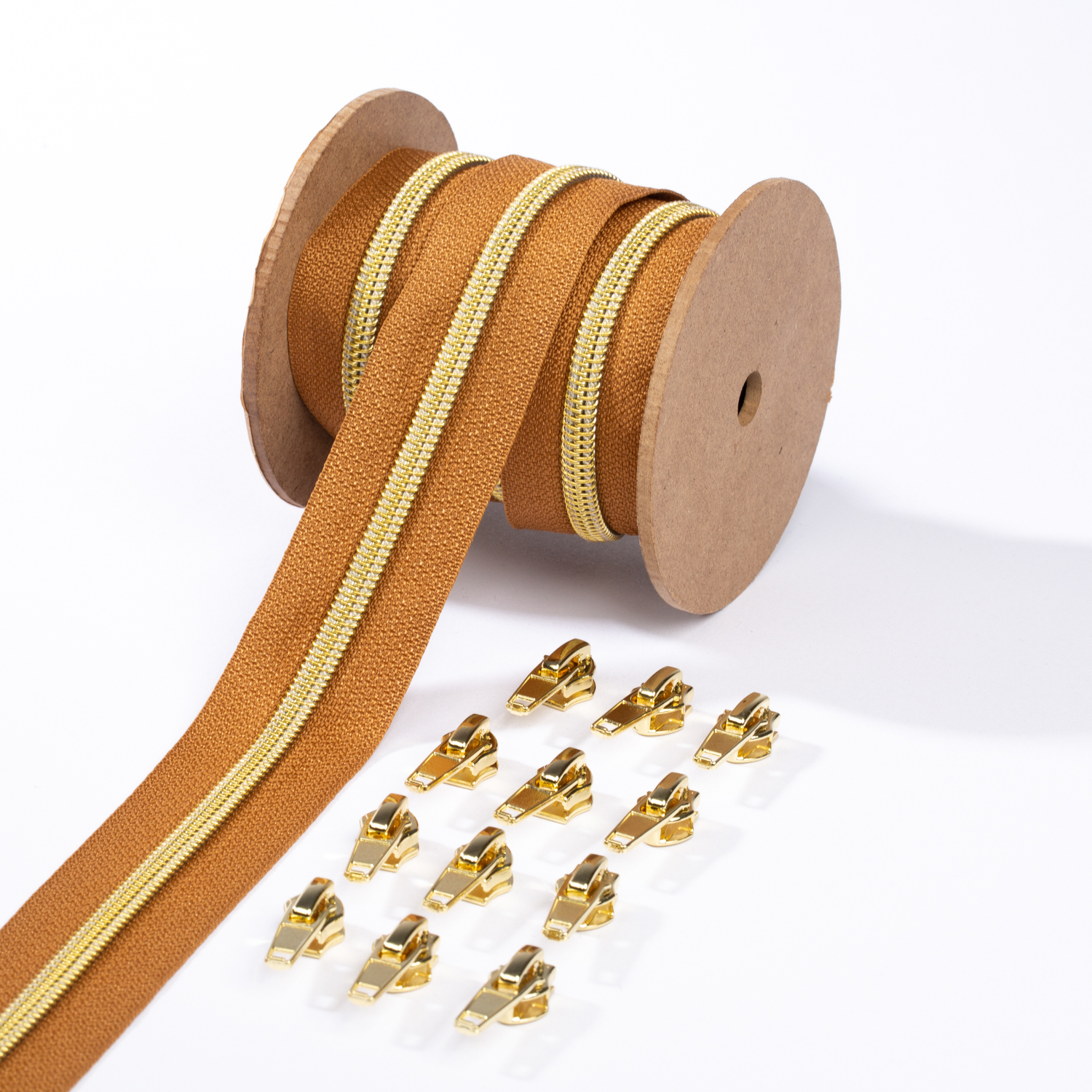 Guld blixtlås metalliserad 6,5mm pärla | 3m | guldbrun D857