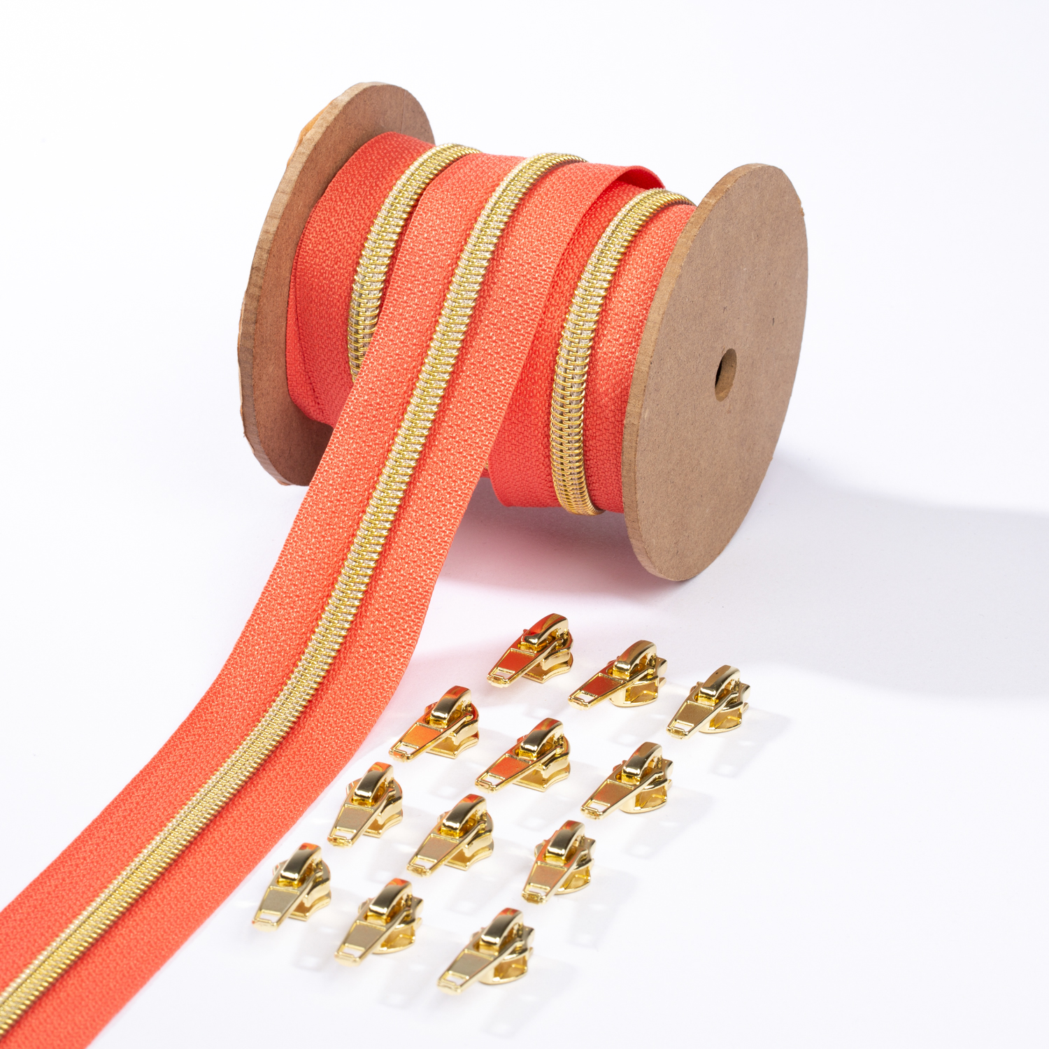 Guld blixtlås metalliserad 6,5mm pärla | 3m | korall